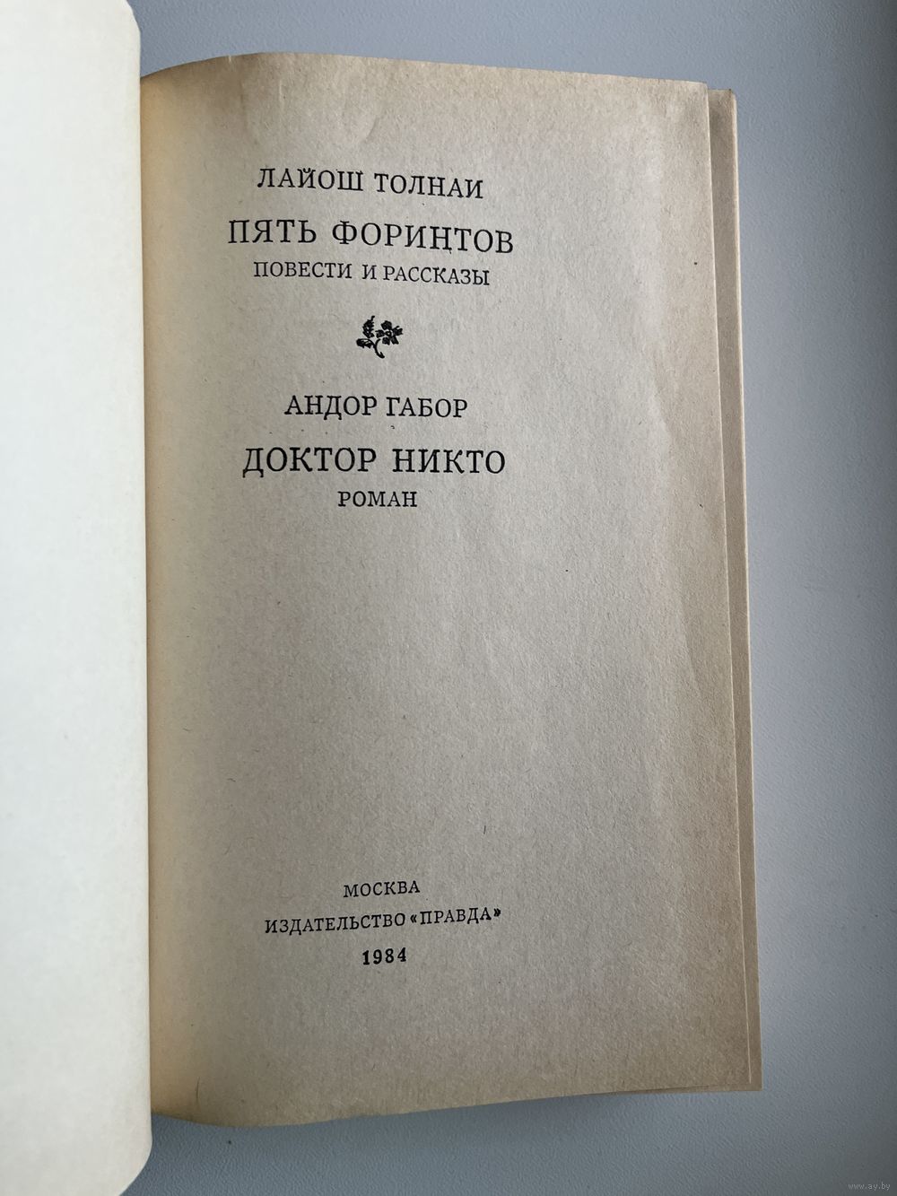 В сборник вошли повести и рассказы Лайоша Толнаи (1837—1902) «Пять форинтов», «Родина голодает», «Исправился» и другие, а также сатирический роман Андора Габора (1884—1953) «Доктор Никто».