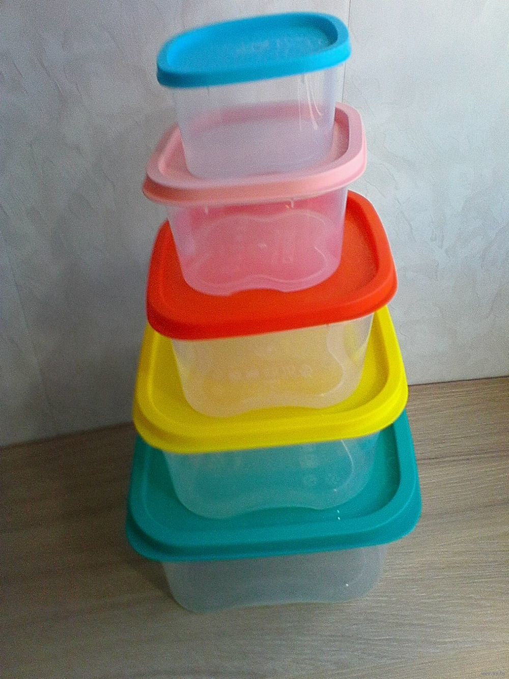 Пять Контейнеров Квадратной Формы с Крышками - Одним Лотом - Все Размеры Указаны в Описании.