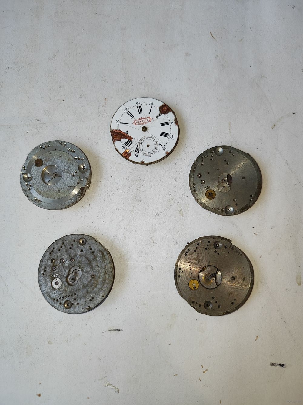 Пять похожих механизмов на запчасти. Балансы битые или отсутствуют,нет пары анкерных вилок ,шестерён и т.д. Диаметры 3-х-4,25 мм. Диаметры больших 2-х-4,42 мм. Состояние на фото. Продаётся одним лотом.