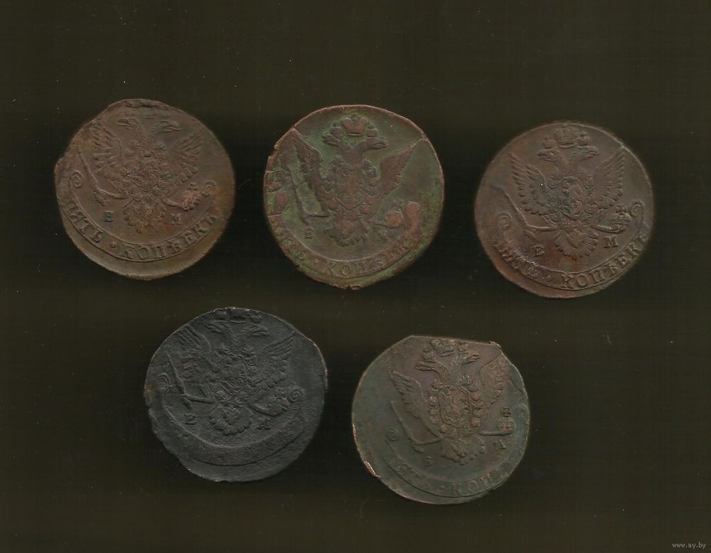Пятаки Екатерины ||, 5 шт.