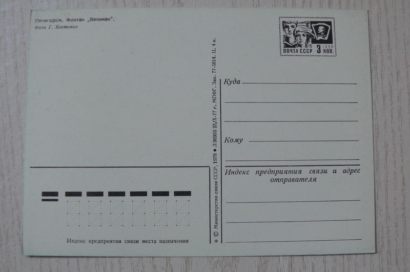 Пятигорск. Фонтан "Великан"; 1977, 1978, чистая, ДМПК.