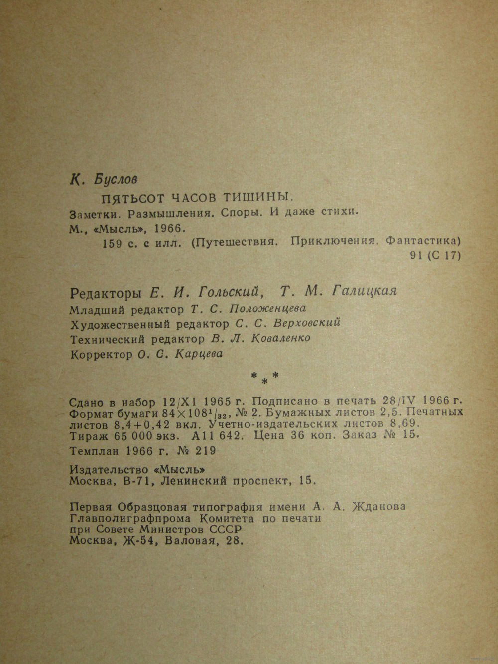 "Пятьсот часов тишины". Буслов К. Автогафф автора. Художник Ю. Куперман. 1966 г.и.