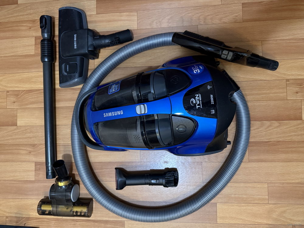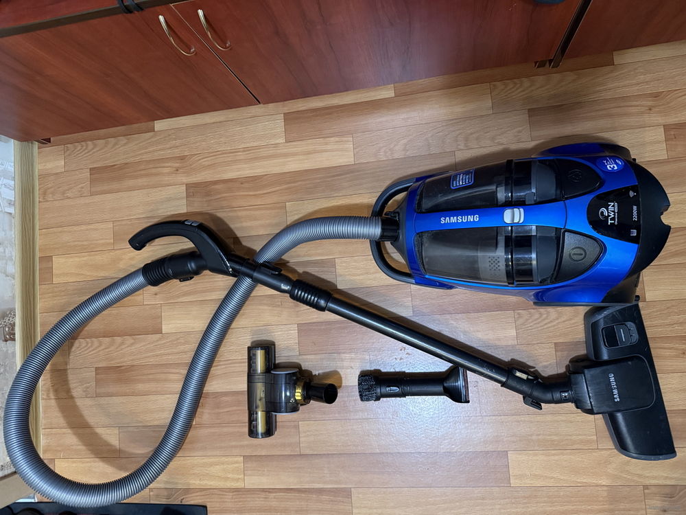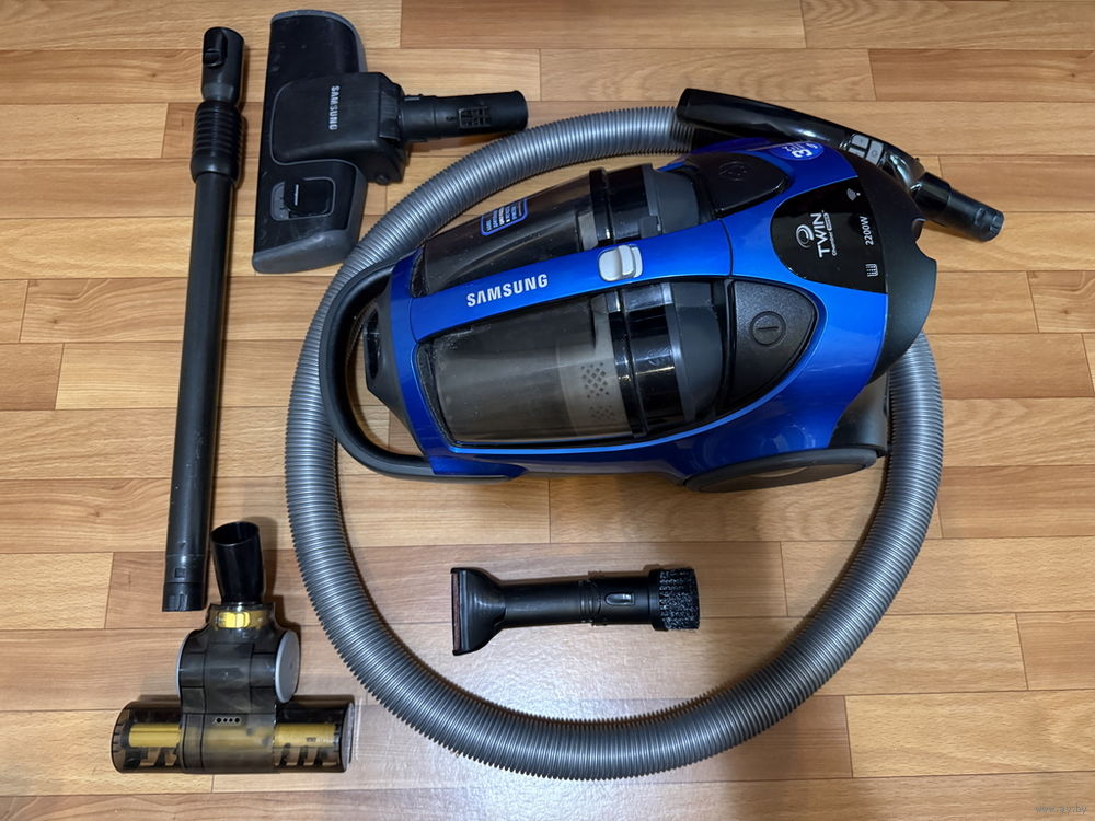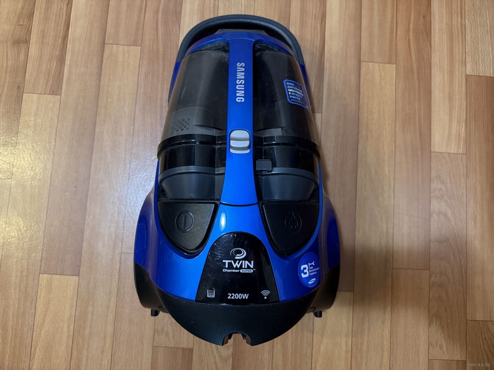 " Пылесос Samsung SC8859 (VCC8859H3B/XEV) ". Пылесос Самсунг, мощность 2200 Вт и мощность всасывания 380 Вт, цвет синий, пылесборник контейнер 2л, сделан во Вьетнаме, покупался новым в РБ, ВСЁ работает, б/у, в хорошем состоянии.