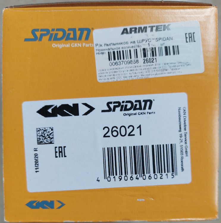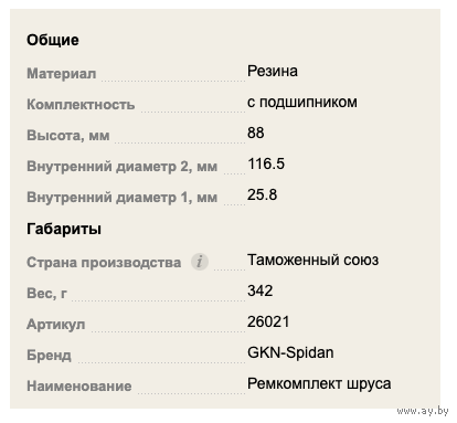 Пыльник с подшипником приводного вала, левый внутренний GKN-Spidan 26021.