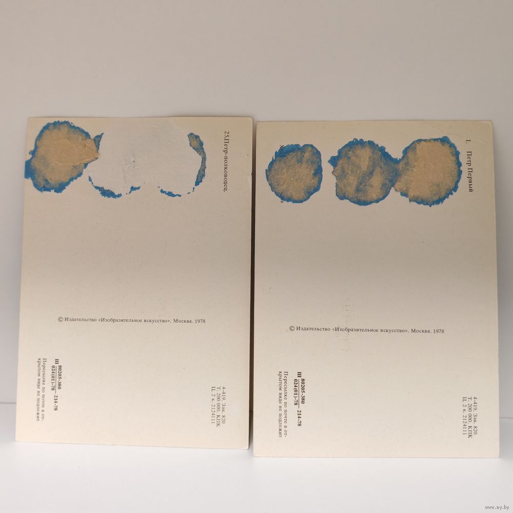 См. фото: на 2х открытка есть надписи, и на 2 - повреждена оборотная сторона |