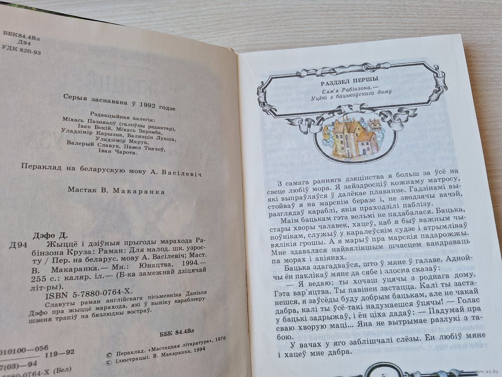 Рабінзон Круза - Дэфо - Бібліятэка замежнай дзіцячай літаратуры 1994 - на беларускай мове - Робинзон Крузо на белорусском языке