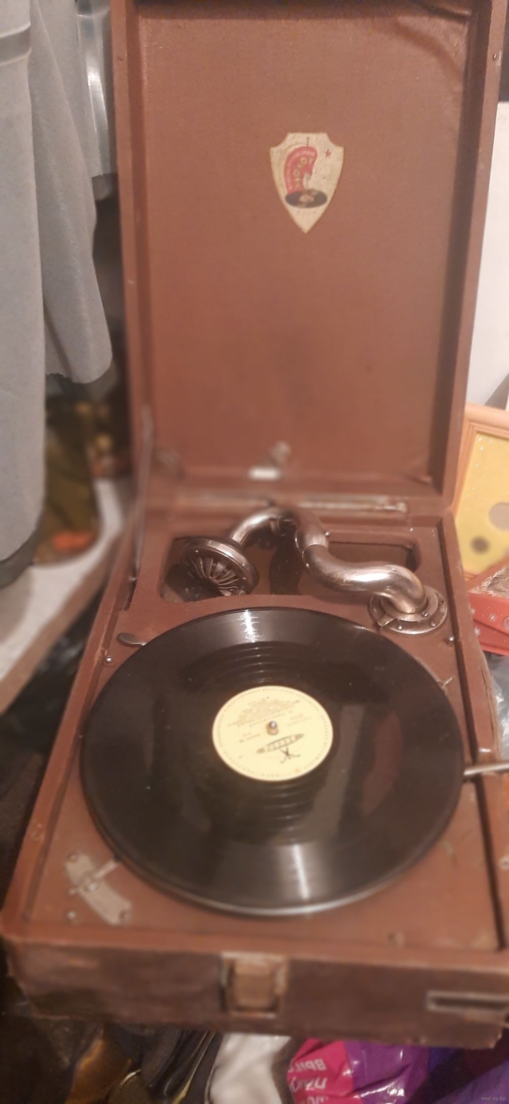 Рабочий грамофон старинный, плюс 6 пластинок.
