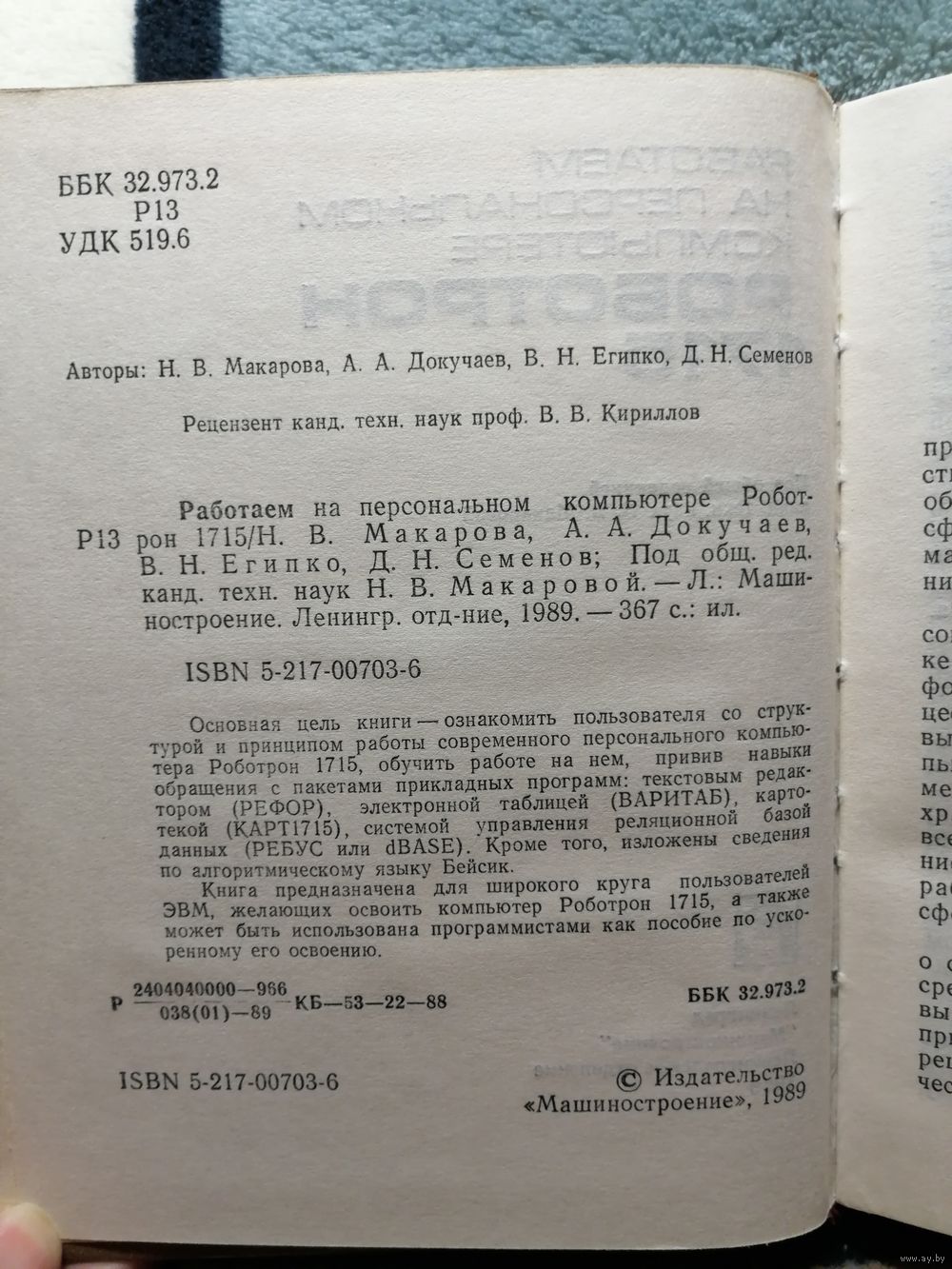 Основная цель книги — ознакомить пользователя со структурой и принципом работы персонального компьютера «Роботрон 1715», обучить работе на нём. В книге рассматриваются пакеты прикладных программ: текстовый редактор (РЕФОР), электронная таблица (ВАРИТАБ), картотека (КАРТ 1715), система управления реляционной базой данных (РЕБУС или dBASE). Также в ней изложены сведения по алгоритмическому языку Бейсик. Книга предназначена для широкого круга пользователей ЭВМ, желающих освоить компьютер «Роботрон 1715», а также может быть использована программистами как пособие по ускоренному его освоению.