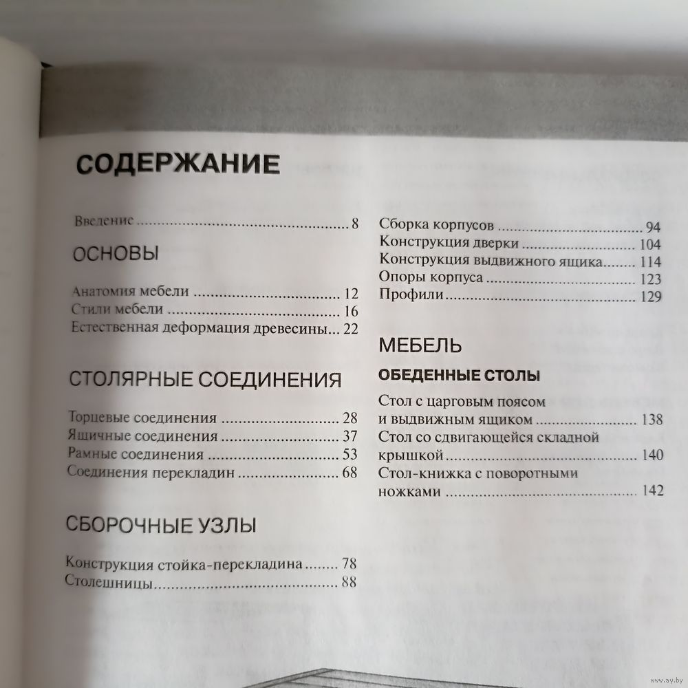 Автор, столяр-краснодеревщик с огромным стажем, щедро делится с читателями своими знаниями и богатым опытом. Книга познакомит вас со столярными секретами и покажет классические решения вечных проблем изготовления деревянной мебели. Вы узнаете, как собираются всевозможные столярные соединения, и найдете наилучшие для вашего случая варианты, как использовать эти соединения в различных проектах мебели, как сочетать соединения и сборочные узлы при окончательной сборке изделия - красивого, функционального и прочного предмета мебели.