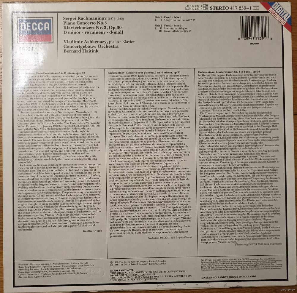 | Исполнитель | Vladimir Ashkenazy / Concertgebouw Orchestra / Bernard Haitink |
