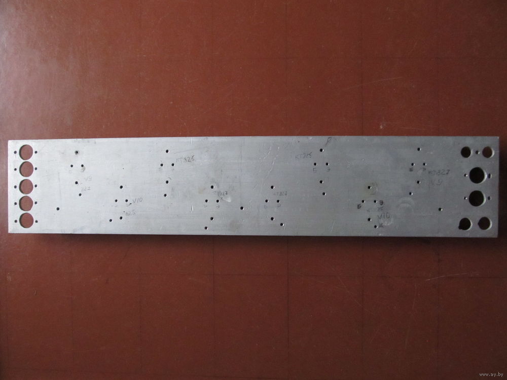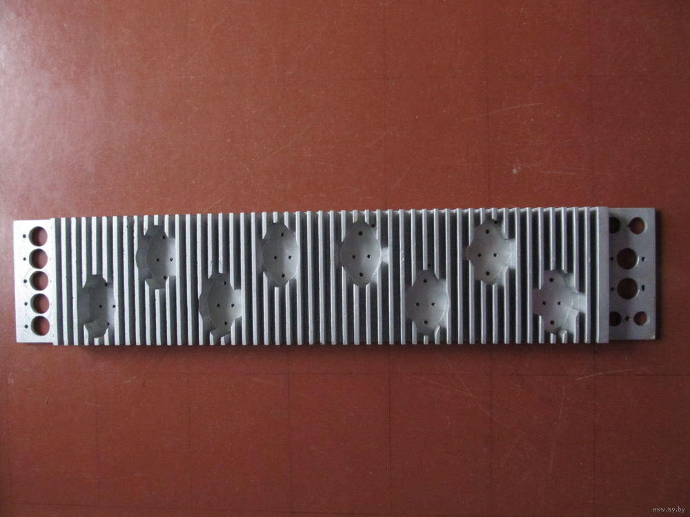Радиатор из алюминия профрезерованный под транзисторы серии КТ. Размер 48х9,5х2 см.