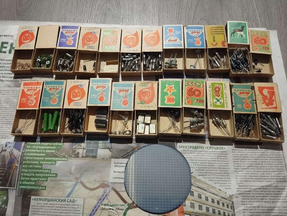 Радиодетали новые , коробки СССР в подарок и кремниевая пластина