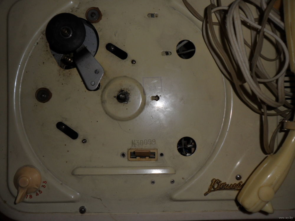 Отсутствуют: оригинальные вентиляционные решетки, декоративная накладка "Петропавловский собор"; держатель тонарма заменен на держатель тонарма от электрофона "Концертный".