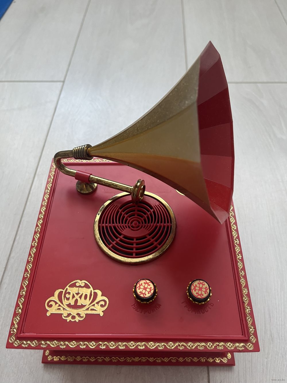 Сувенирный радиоприемник «Эхо». Модель производилась с 1976 года. Материал корпуса - пластик с элементами стилизации под «золото»
