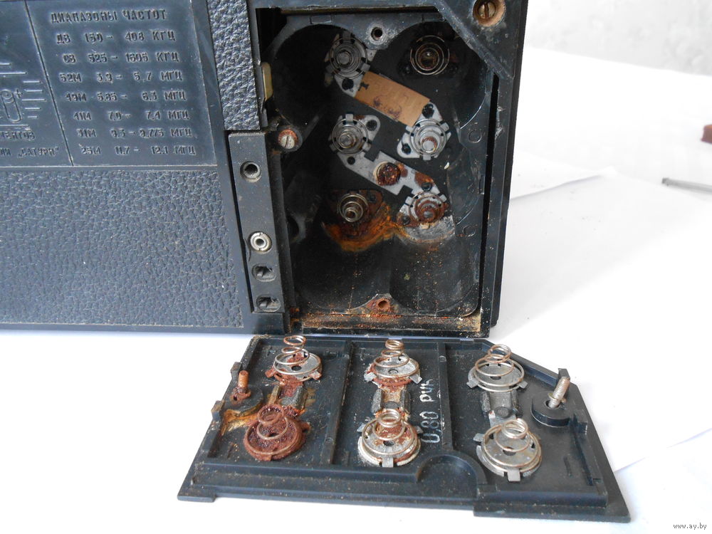 Есть скол на корпусе. Ржавчина в батарейном отсеке. Антенна раздвигается, но вынимается из корпуса - отвинчена. пломбы отсутствуют.