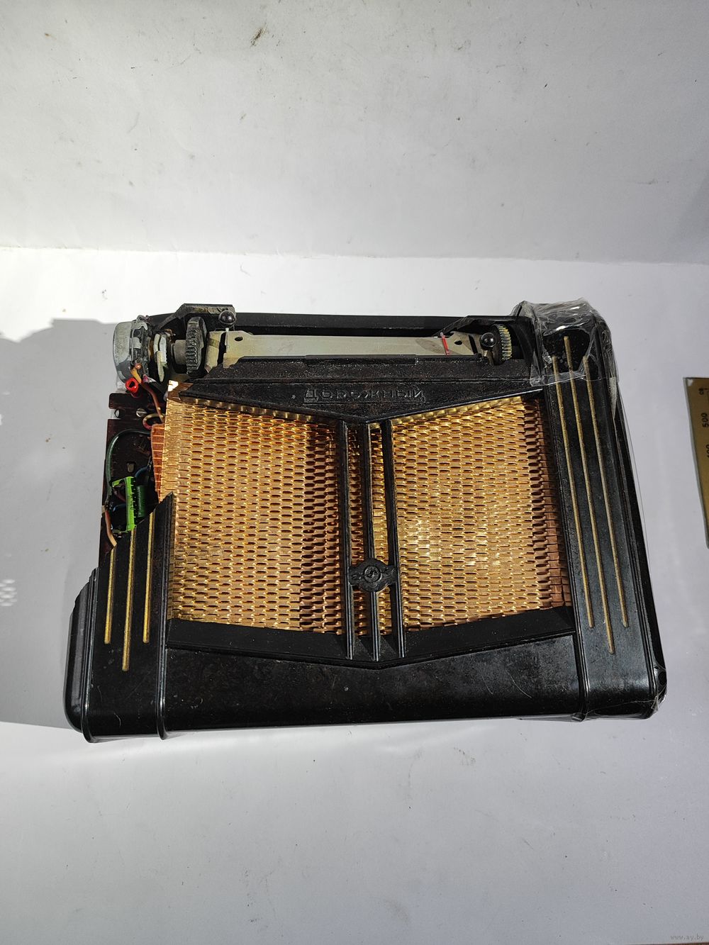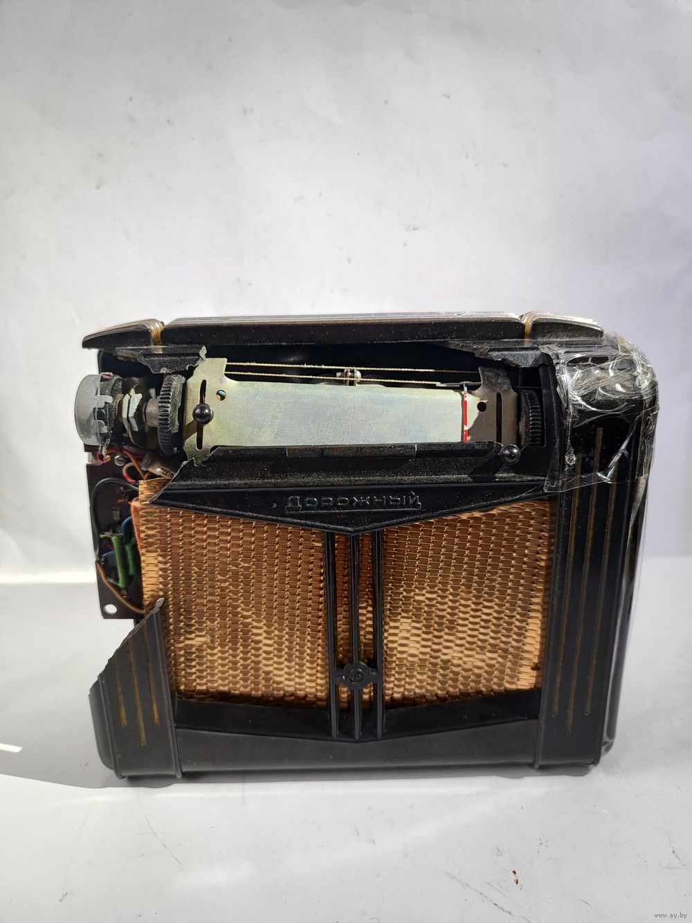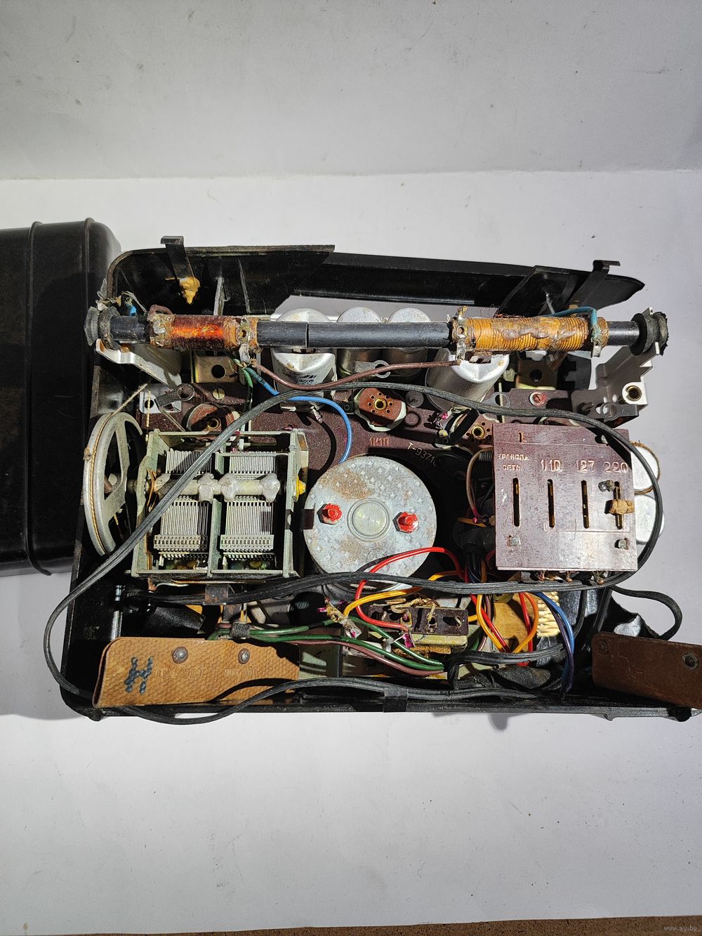 На запчасти или восстановление. Шкала целая(отдельно не продаётся).Задняя крышка целая. Шасси в основном целое(кроме антенны),с контактами для подключения батарей и сетевым шнуром. Нет ламп. Состояние на фото. Нечастый приёмник.