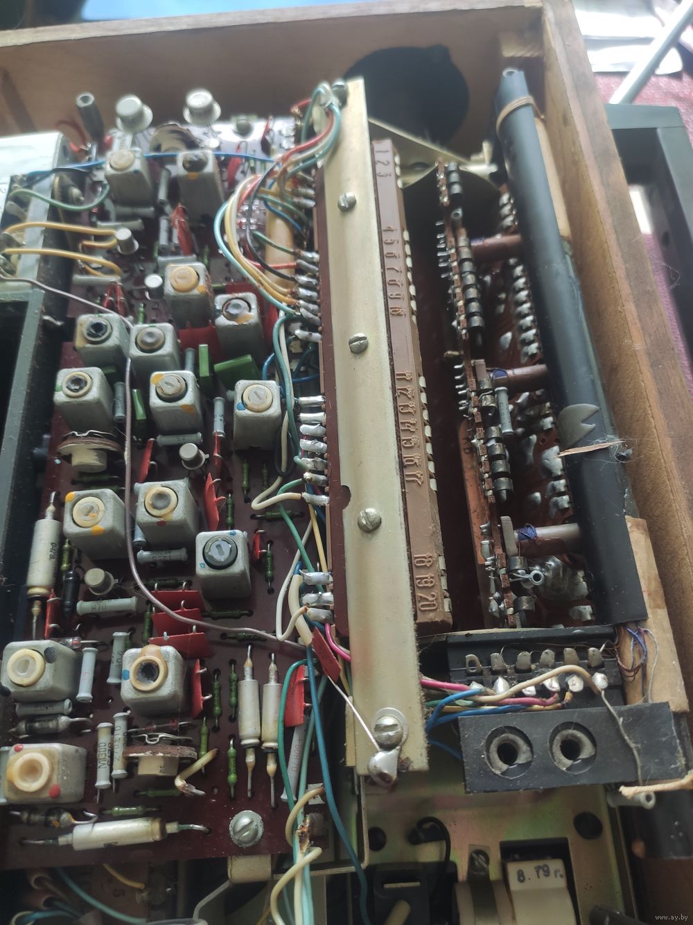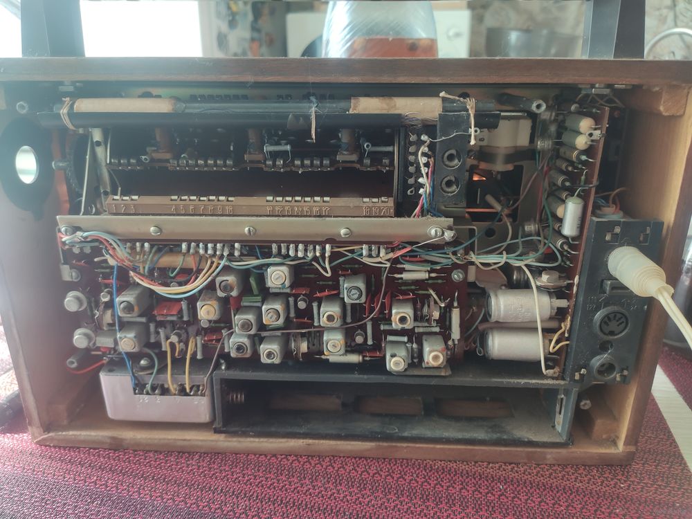| Приёмник рабочий. Платы не видели паяльника. Нет ручек настройки на передней панели. Отсутствует крышка для блока батареек. Сломана антенна. | |
