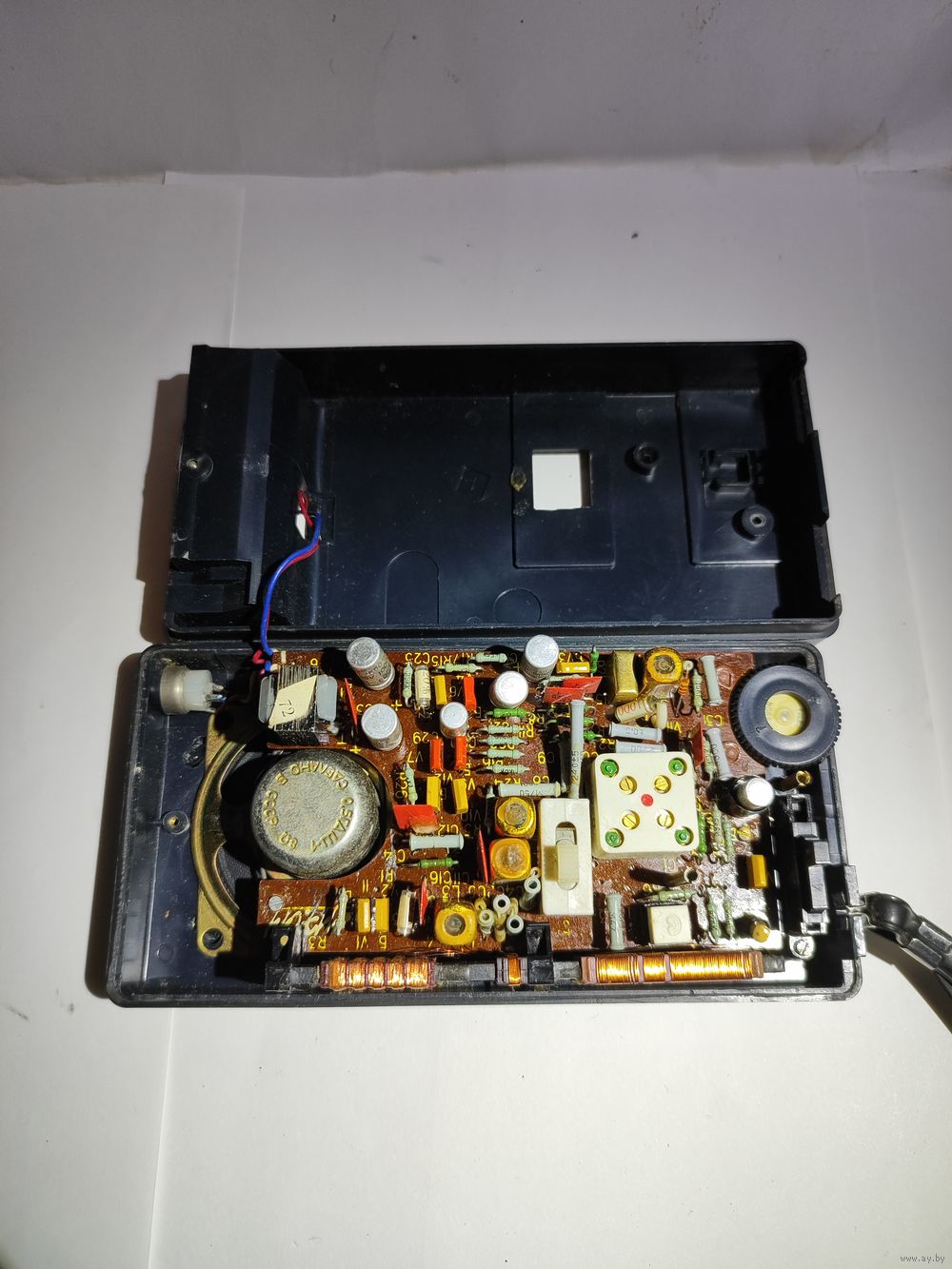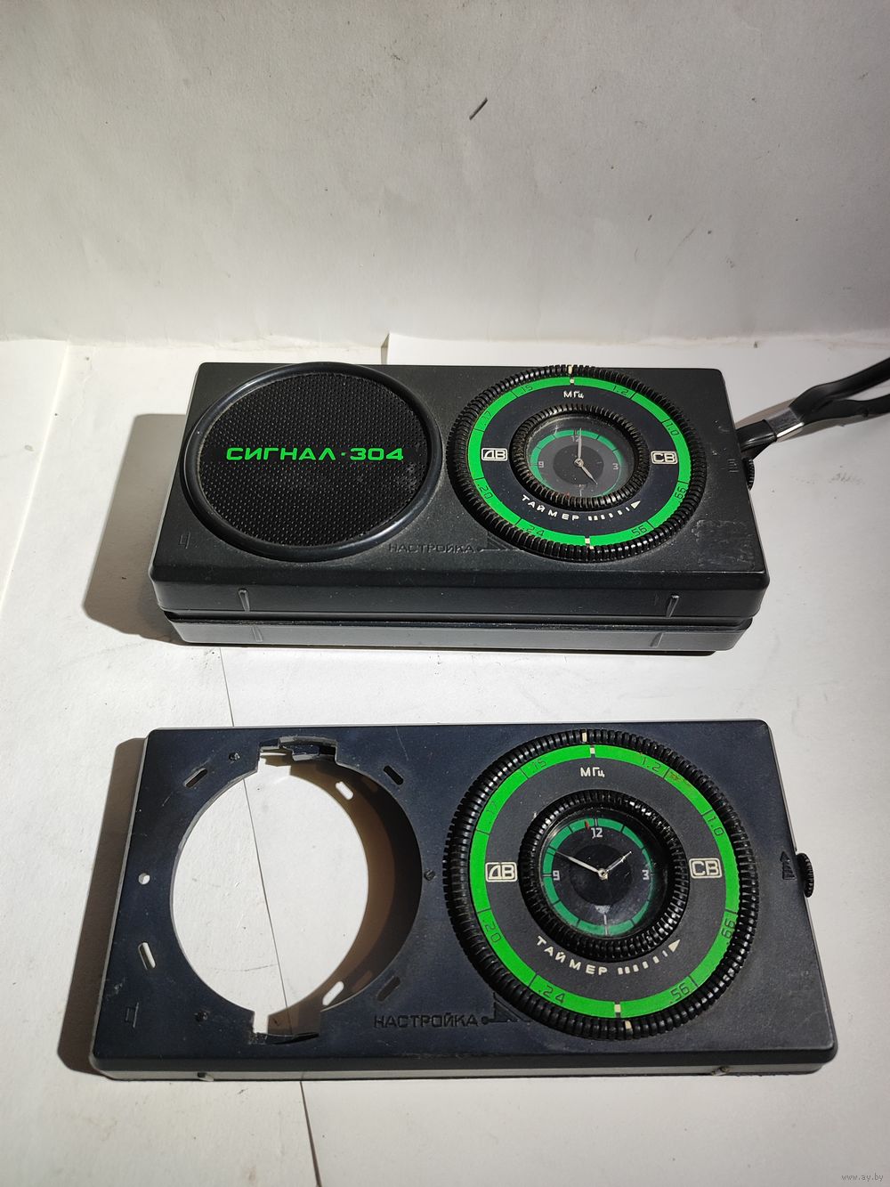 С передней панелью.(для замены). Часы приёмника на ходу.(в лц. панели не рабочие). Приёмник иногда несильно шипит, но станции не ловит. Состояние на фото(нет одной кнопки переключения,сзади следы от нагрева)