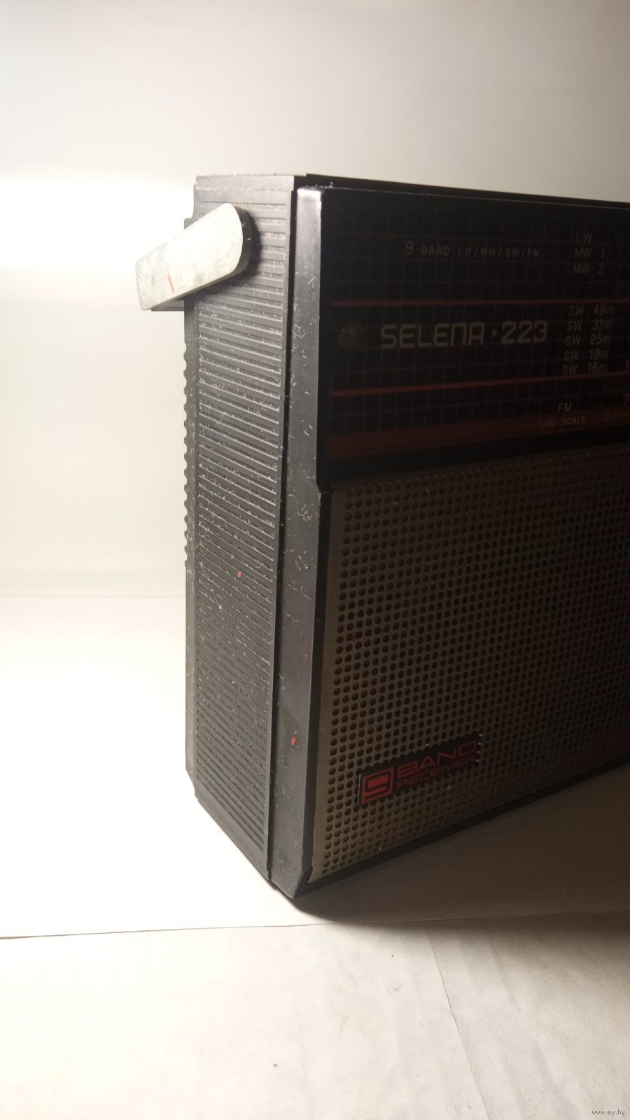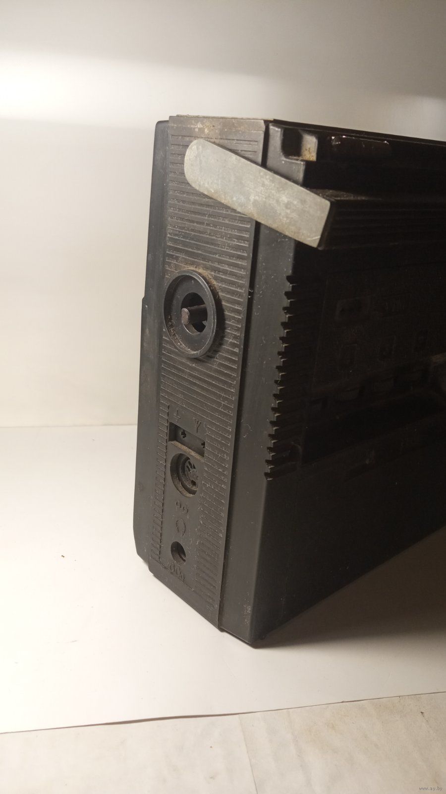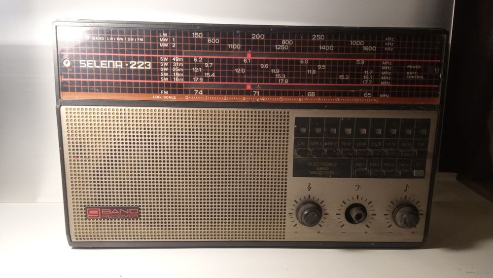 Не рабочий. Точно сгорел трансформатор ТП8-8. Дальше не известно. Антенна обломана. Корпус целый, крышка батарейного отсека на месте. На восстановление, на запчасти.