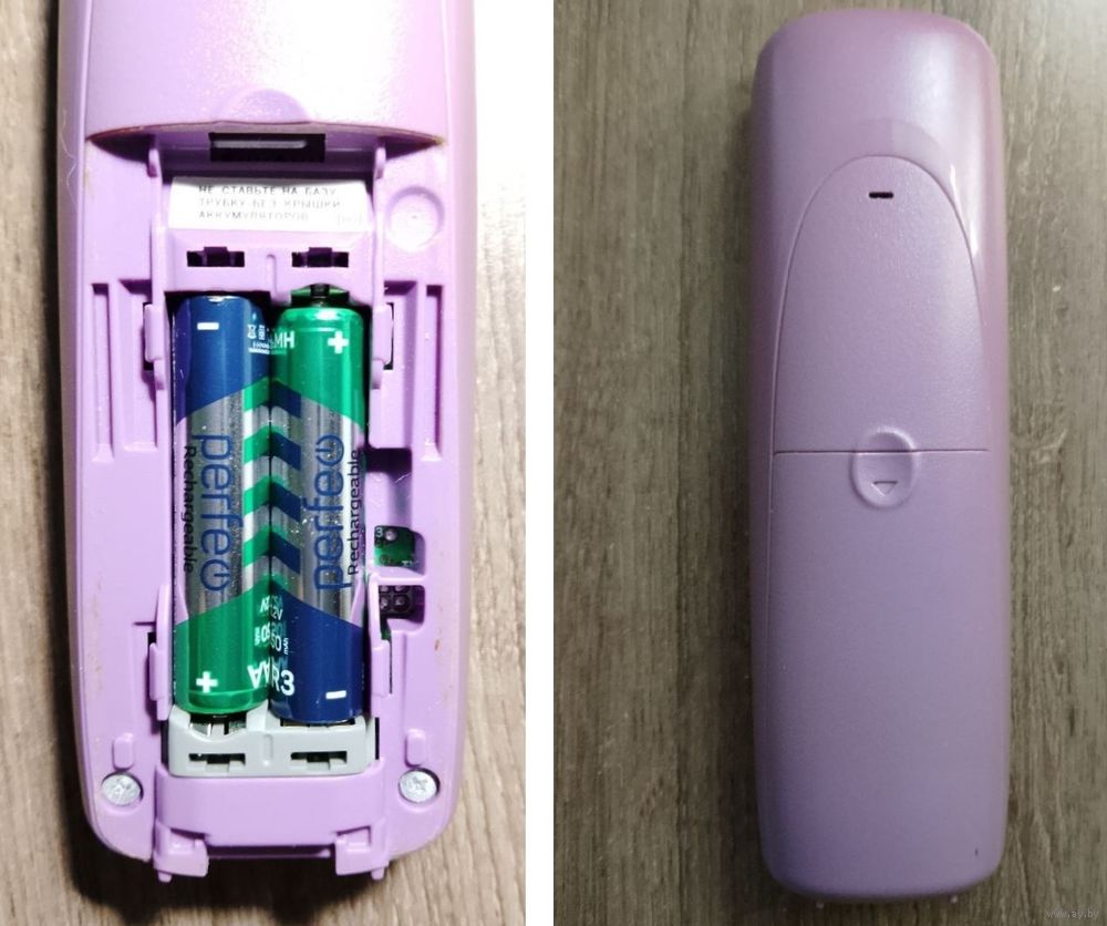 цвет сиреневый, база + трубка + блок питания, новые аккумуляторы 2шт AAA NiMH, 1,2V, 850mAh