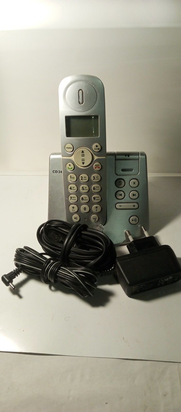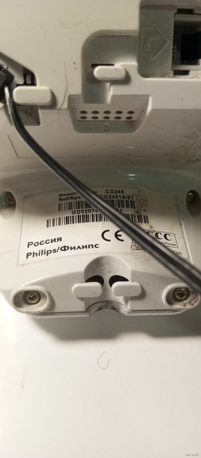 Комплект без аккумуляторов. Трубка проверена на батарейках, экран загорается, но информацию не выдает, кнопки нажимаются. Базу проверить нет возможности. нет телефонной линии. База трубку ищет, трубка отзывается. Продается по цене неисправного на запчасти.