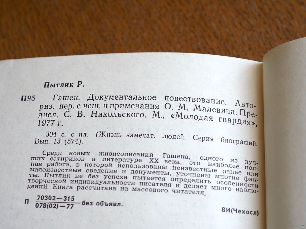 Радко Пытлик. Гашек. 1977 . Серия: "Жизнь замечательных людей". Состояние.