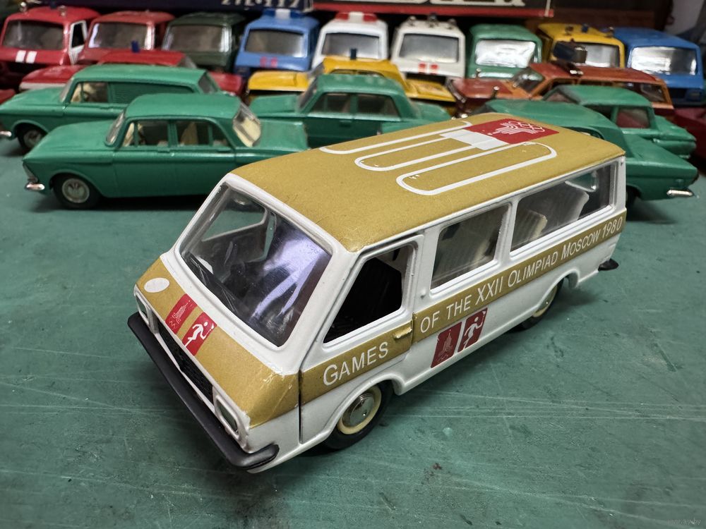 РАФ-2203 номерной А18, конверсия-реплика чрезвычайно редкого олимпийского рафа. Тонкие оси, смещенные швы на покрышках. Распродажа коллекции. Смотрите и другие мои модели.