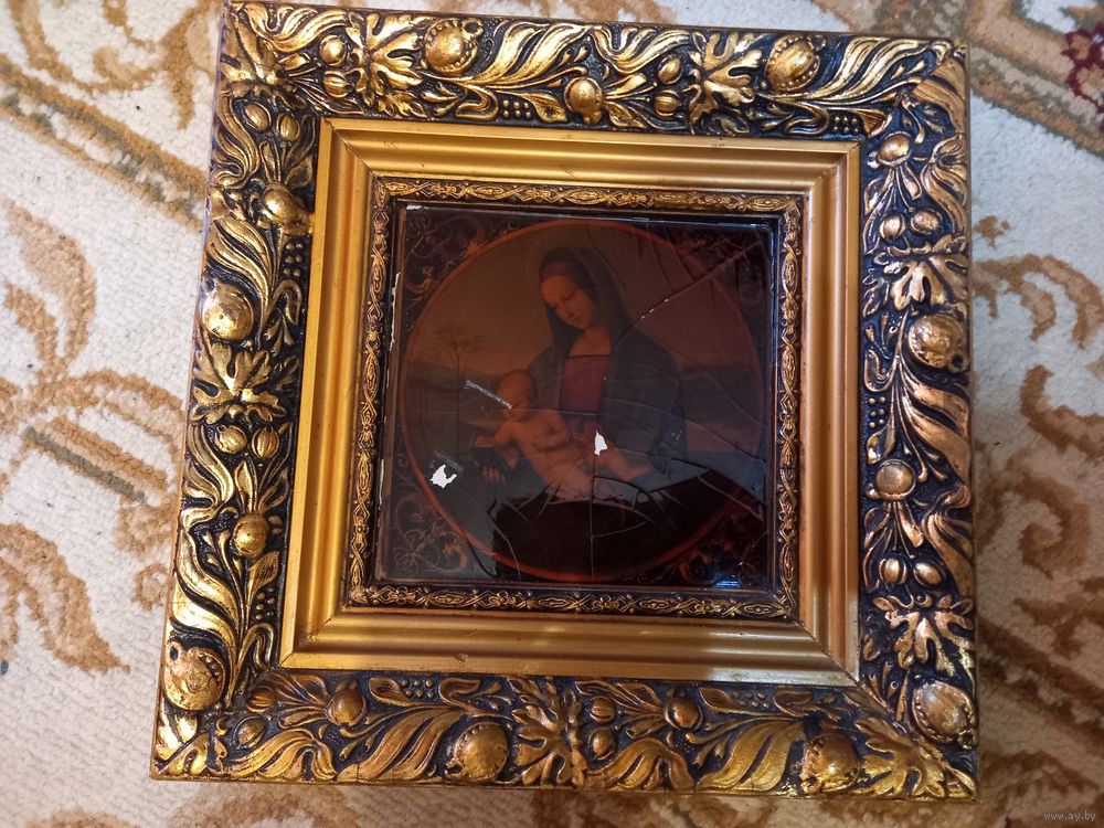 Рафаэль Мадонна Конестабиле Репродукция на ткани в красивой рамке Ленинград, 1978 г. 27х27 см.