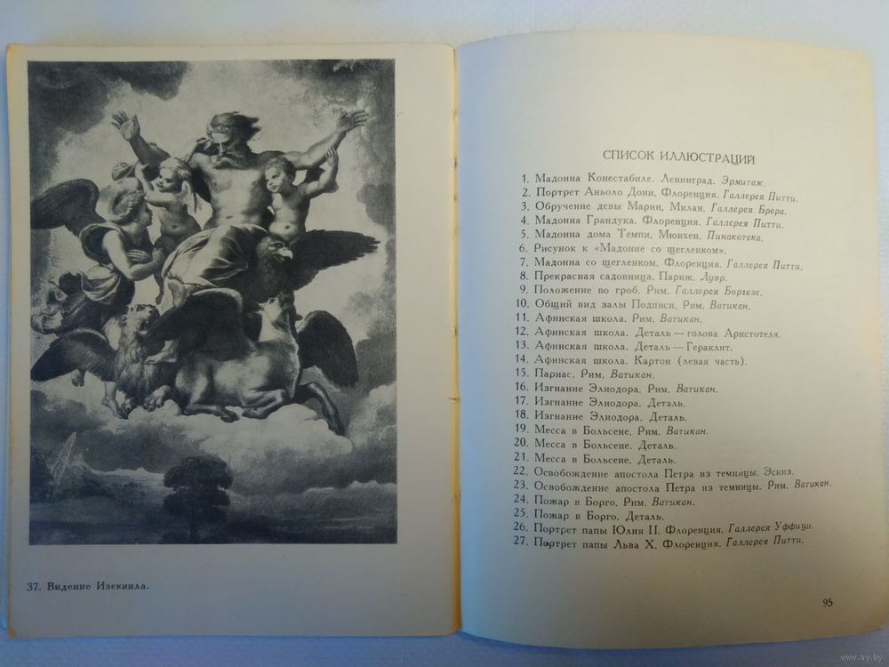 11. Н.Е. Элиасберг. Рафаэль (1483-1520). Альбом. Москва, Государственное издательство «Искусство», 1961 г. – 96 стр., 3 цветных и 37 черно-белых иллюстраций. Тираж 20.000 экз. На обложке фрагмент картины Рафаэля «Сикстинская мадонна». 1513-1514 гг. Дрезденская картинная галерея.