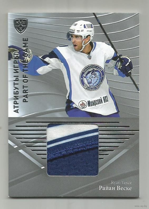 Райан Веске / "Динамо" Минск / Джерси карточка / Тираж 13/115 экземпляров/ / Коллекция "SeReal Platinum collection. Лучшие игроки КХЛ 2015-2016".