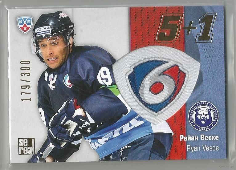 Райан Веске / "Медвешчак" Загреб / Подсерия: 5+1 / Тираж 179/300 экземпляров/ / Коллекция "SeReal Карточки КХЛ 2013-2014".