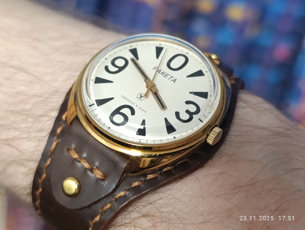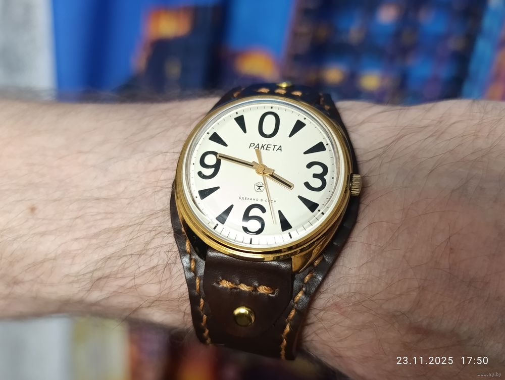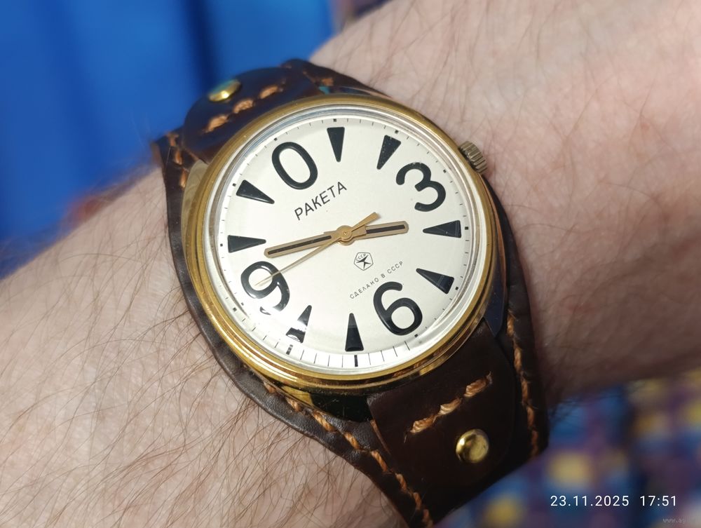 Механические часы "Ракета -Зеро" на новом кожаном ремне - напульснике.