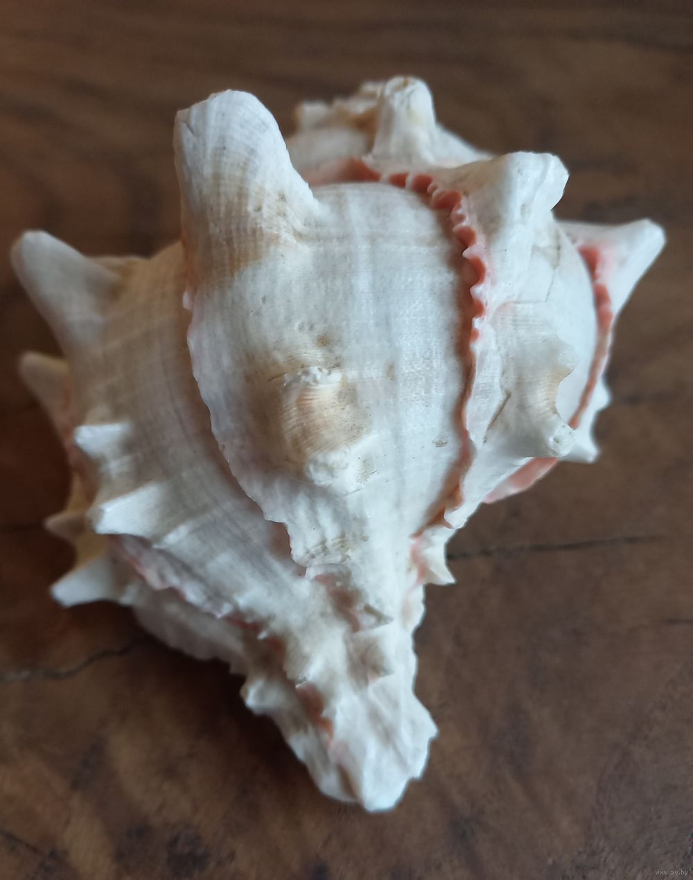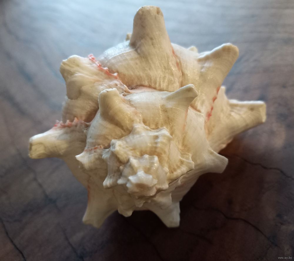 Ракушка Мурекс ветвистый, Чикореус Рамосус, Ветвистый Мурекс, Murex ramosus. Ветвистый мурекс хищник, он питается двустворчатыми моллюсками. На внешней губе моллюска есть специальный шип, который предназначен для раскалывания двустворчатого моллюска. Когда ветвистый Мурекс ловит свою добычу, то зажимает ее между шипом и крышечкой. Постепенно втягивая двустворку, он раскалывает ее об острый шип.