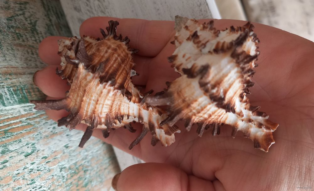 Ракушки Мурекс Индивия, 2 штуки, цена за все. Раковины Murex indivia Longspine. Раковины украшают шипы с зазубринками.