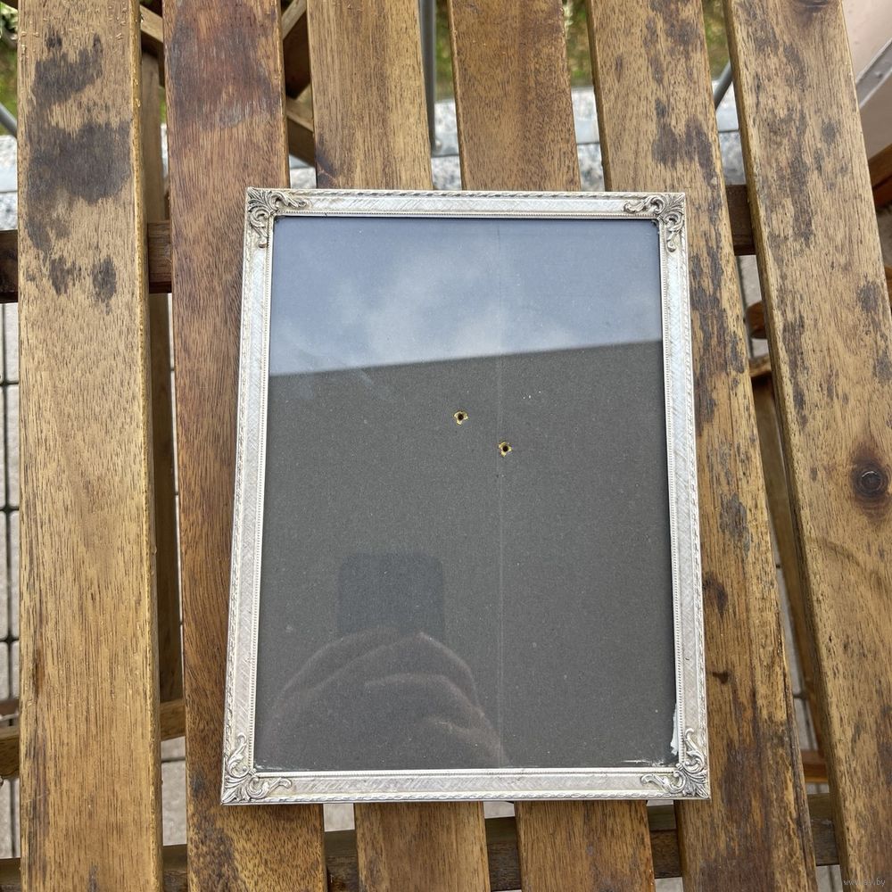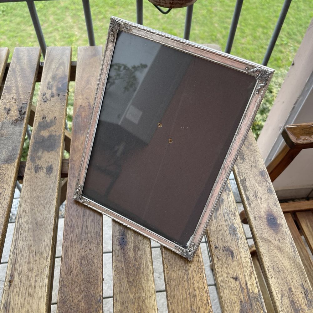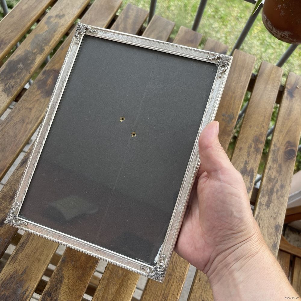 Антикварная рамка для фото из посеребренного металла с изящными рельефными накладками по углам. Под стеклом. Франция. 1950-е г.г. Размер 18,5 х 24 см, под фото 16 х 21,5 см. Подставка для настольного горизонтального/вертикального размещения. Подвесы для настенного горизонтального/вертикального размещения. Естественная патина.