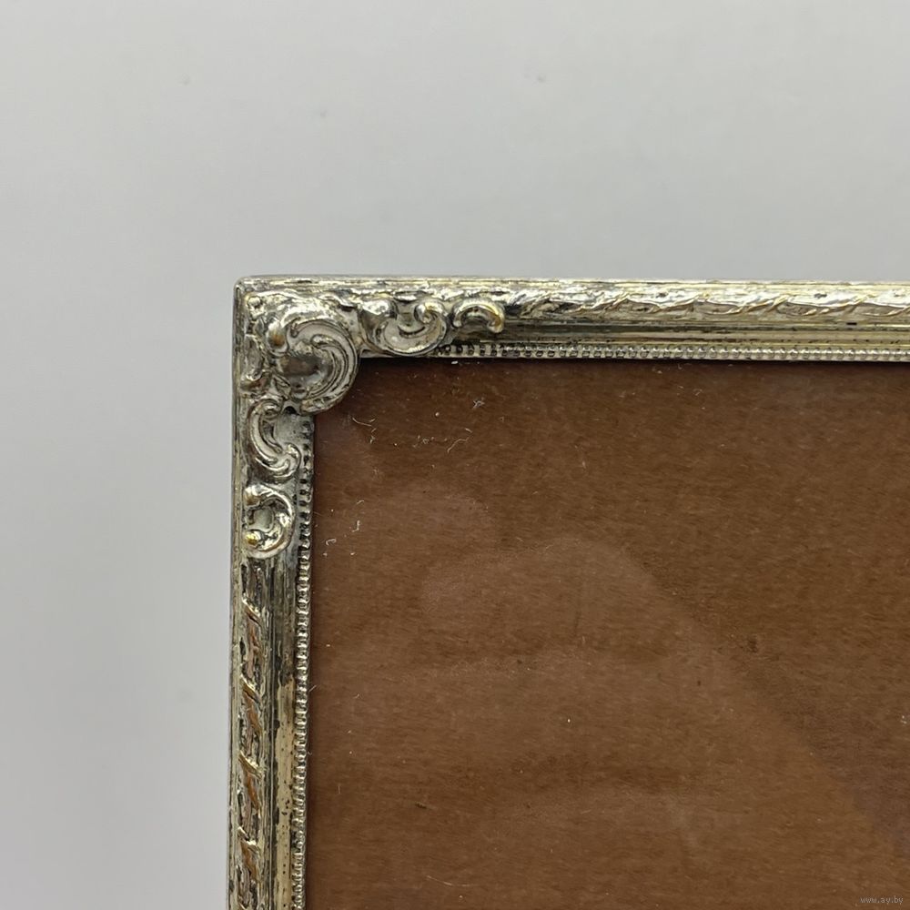 Антикварная рамка для фото из посеребренного металла с изящным рельефным декором. Под моллированным (выгнутым) стеклом. Франция. 1930-е г.г. Размер 13,5 х 18,5 см, под фото 12 х 19 см. Подставка для настольного горизонтального/вертикального размещения. Подвесы для настенного горизонтального/вертикального размещения. Естественная патина. Ограничительная лента на подставке со следами грубой реставрации, на внешний вид не влияет, функцию выполняет, легко заменить (см. фото, учтено в цене).