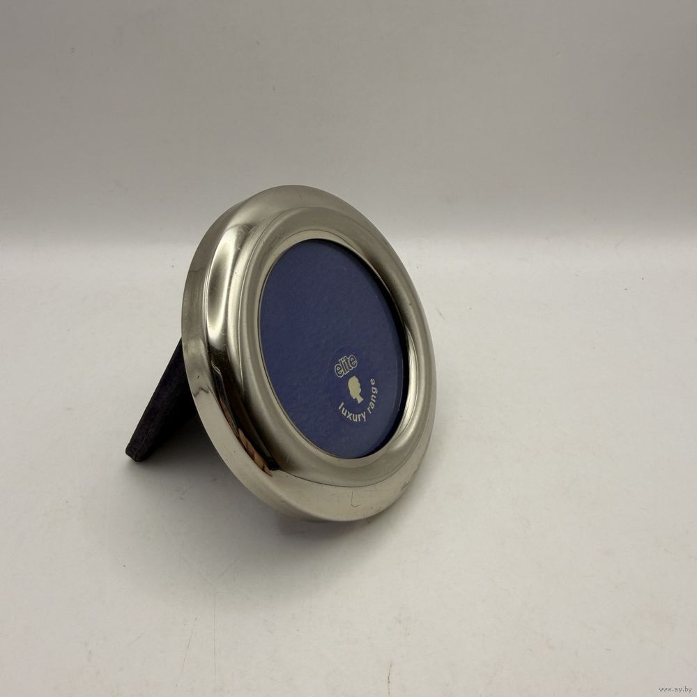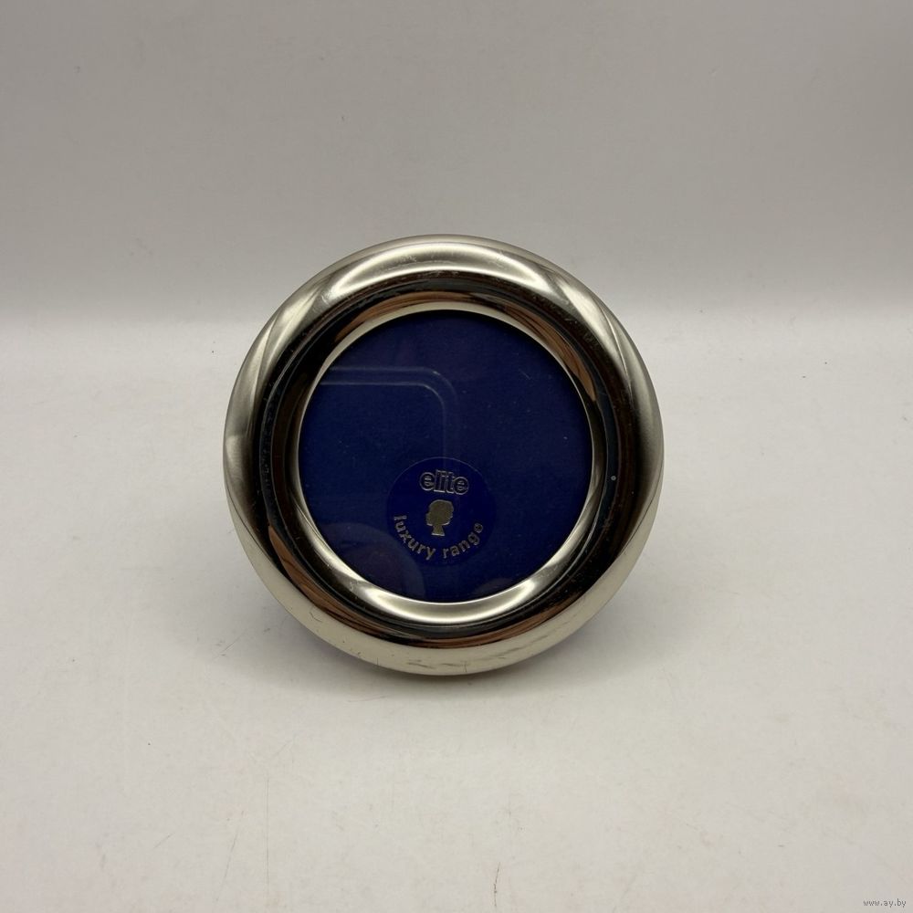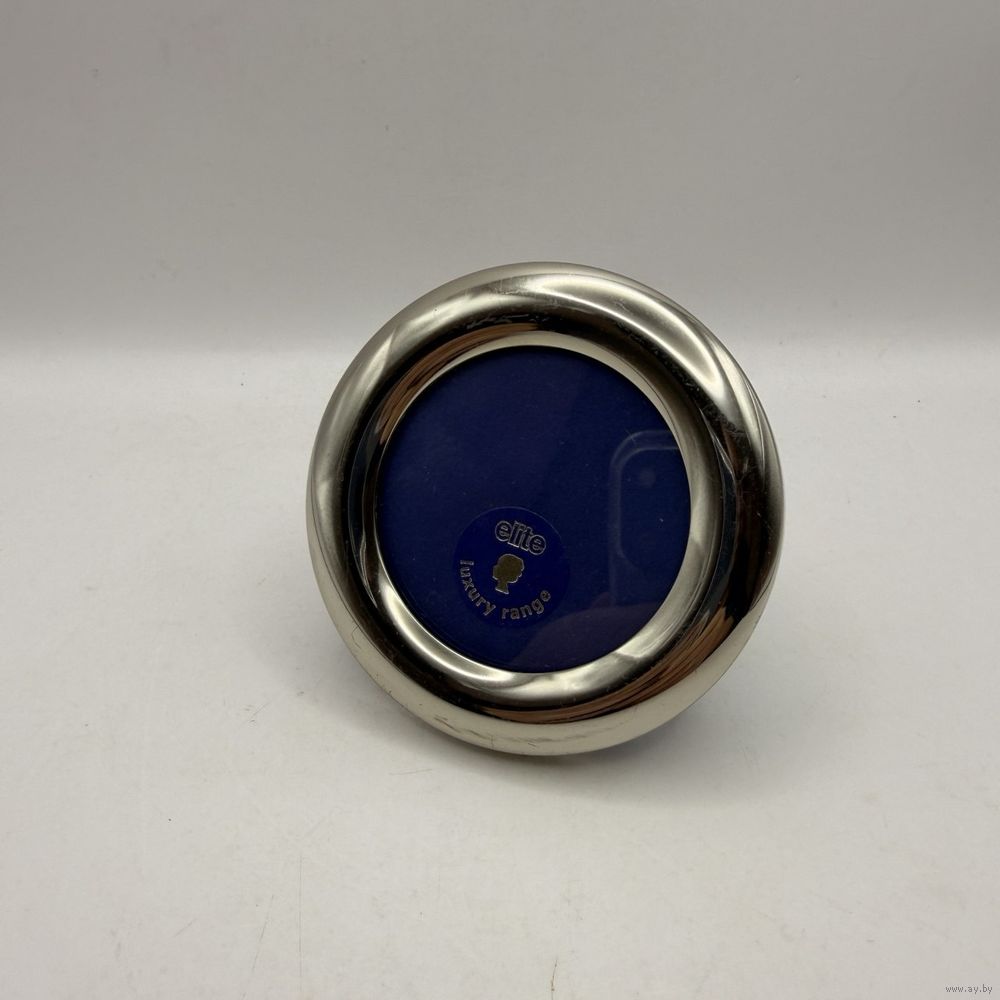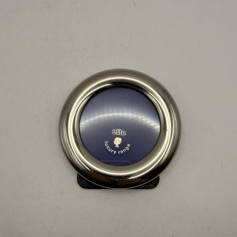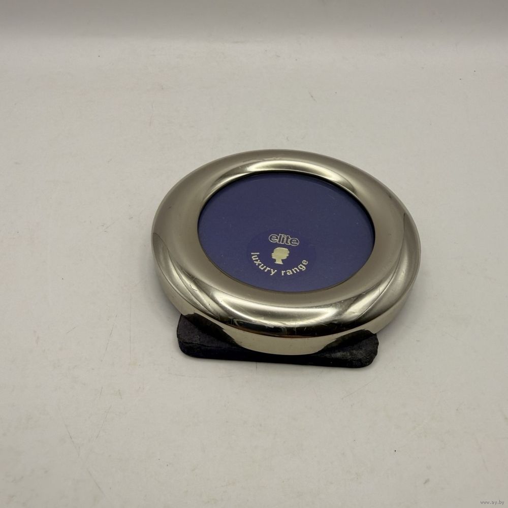 Винтажная металлическая фоторамка со стеклом из премиальной серии elite luxury range. Англия. 1980-е г.г. Диаметр 7,5 см, под фото 5 см. Настольное вертикальное размещение. Естественная патина, следы времени на бархатной подставке.