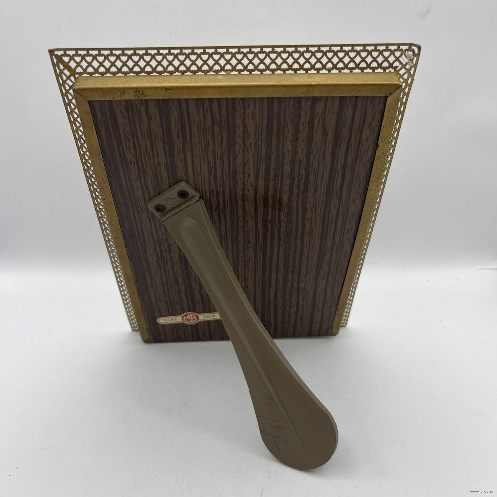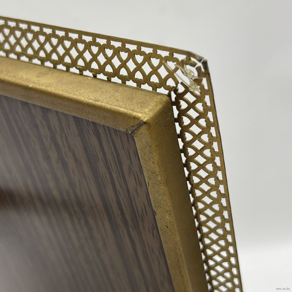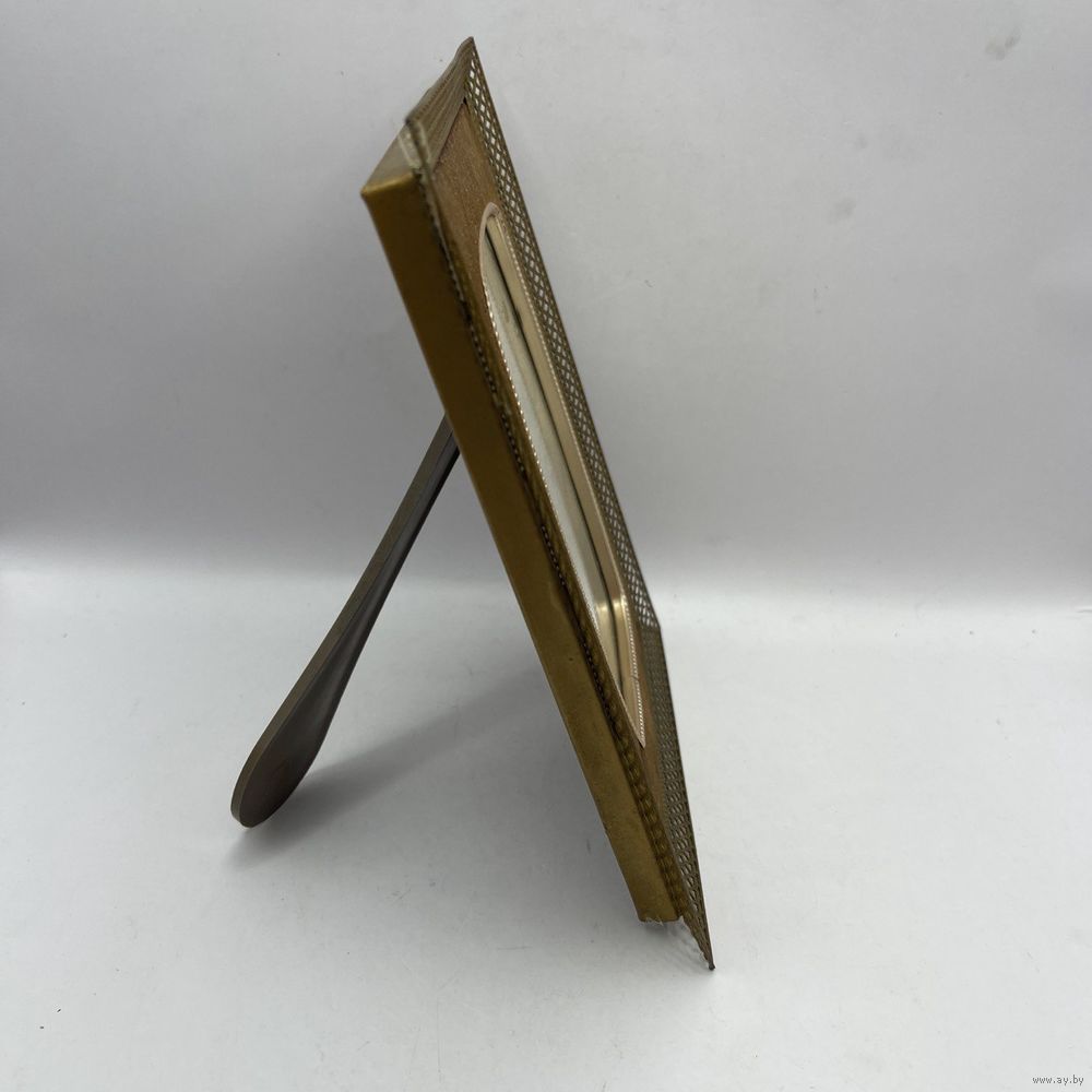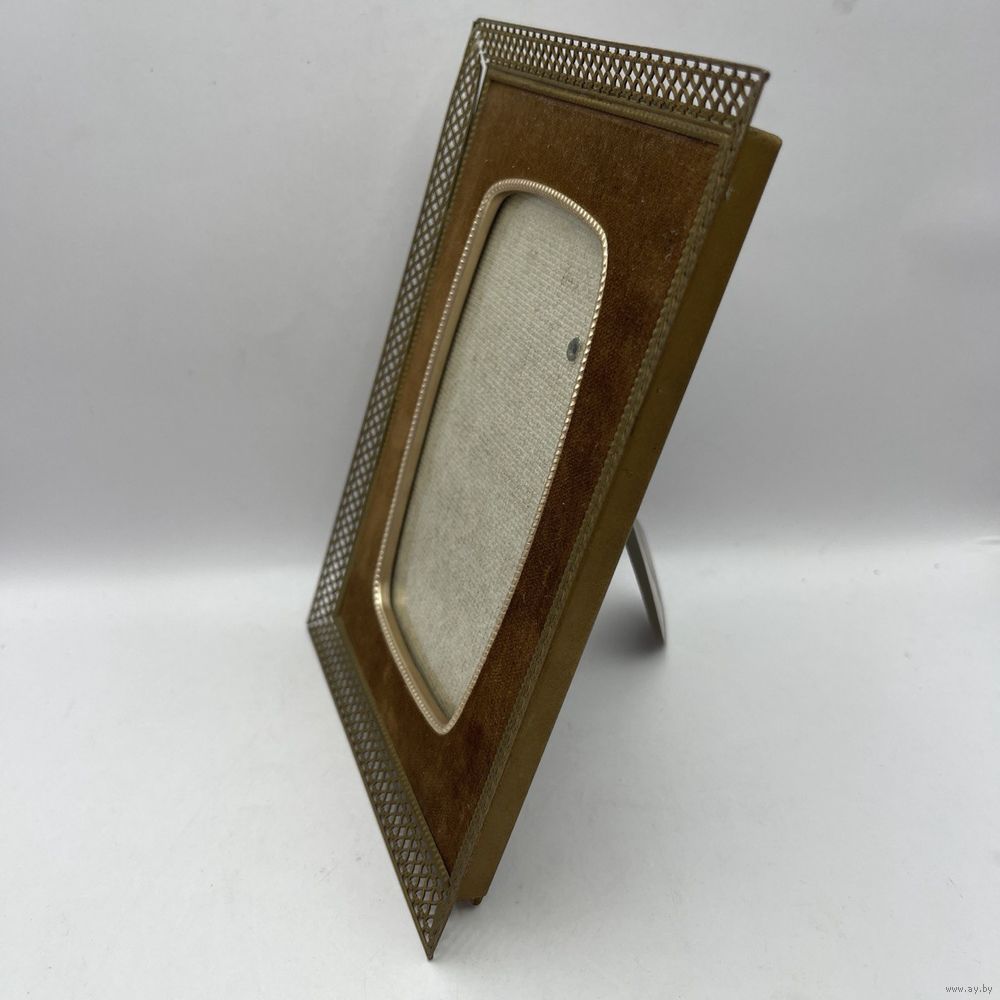 Антикварная настольная фоторамка из латуни с ажурным прорезным узором и бархатным паспарту, под стеклом. Италия. 1950-е г.г. Размещение вертикальное/горизонтальное. Размер 14 х 19 см, под фото 8,5 х 12,5 см. Естественная патина. Следы реставрации в месте спайки в углу, на внешний вид не влияет (см. фото, учтено в цене).