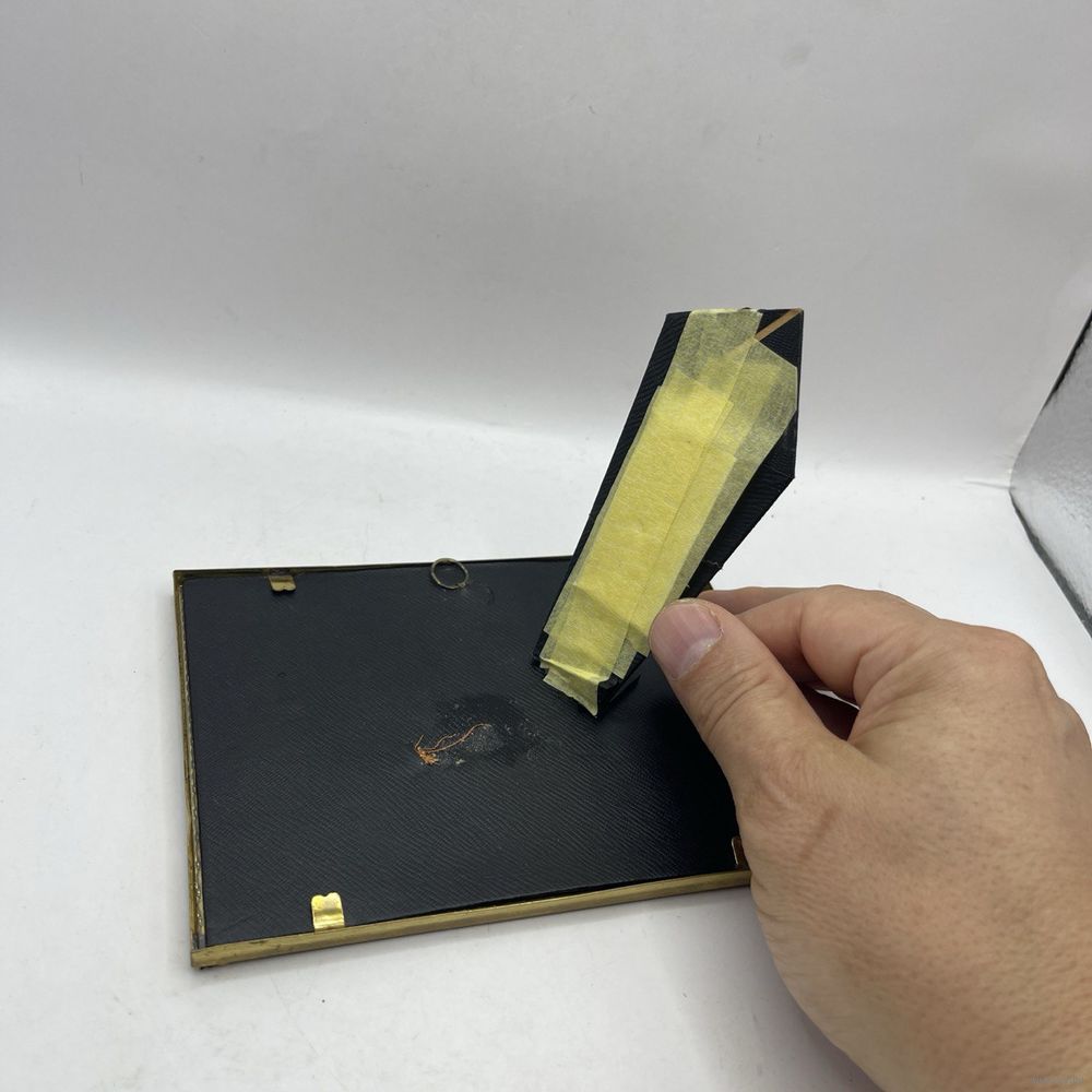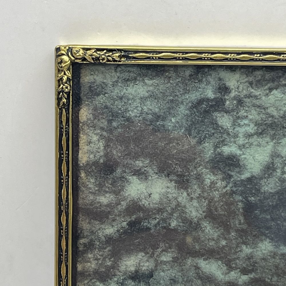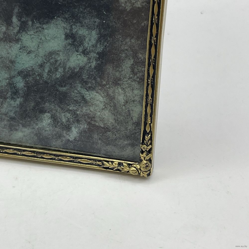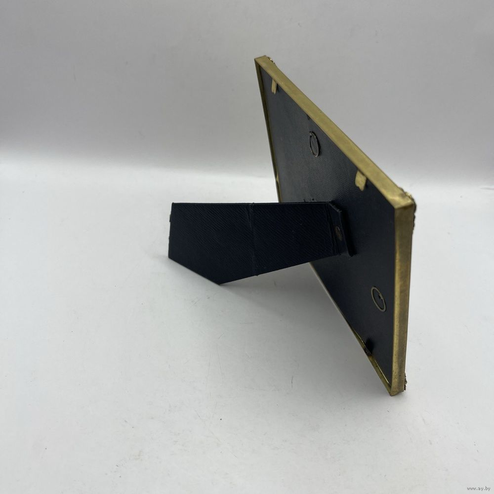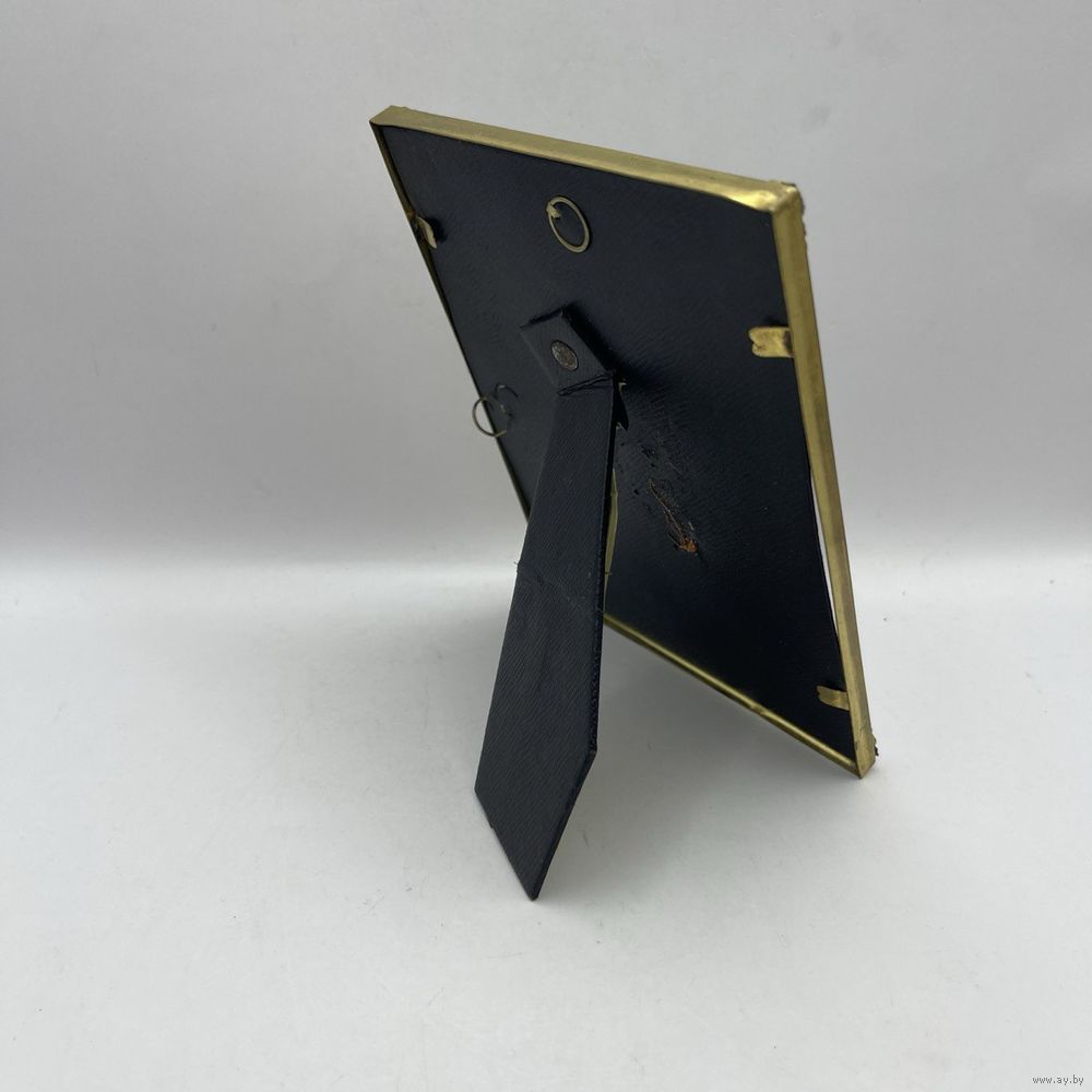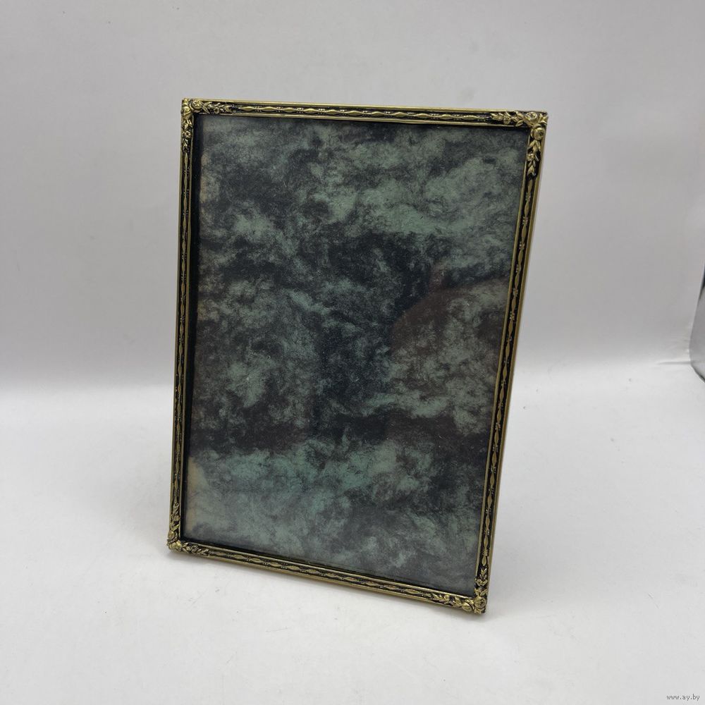Антикварная латунная фоторамка с растительным накладным декором по углам. Под стеклом. Франция. 1930-е г.г. Размещение вертикальное/ горизонтальное/ настенное/ настольное. Размер 11 х 15 см, под фото 10 х 14 см. Естественная патина. Подставка для настольного размещения со следами реставрации (легко заменить, учтено в цене).