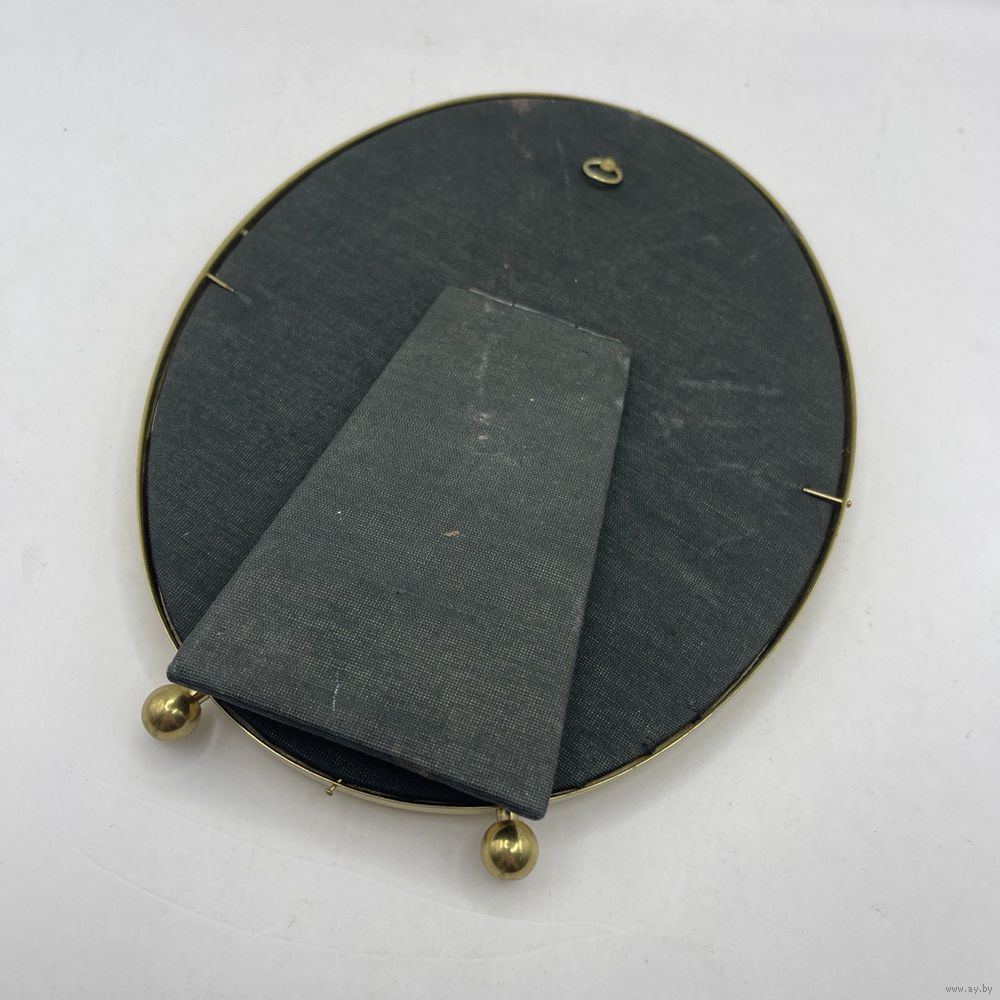 Винтажная латунная рамка для фото на ножках-шариках. Со стеклом. Италия. 1950-е г.г. Размер 15,5 х 20,5 см, под фото 12 х 66 см. Подставка для настольного размещения, кольцо-подвес для настенного размещения. Естественная патина.