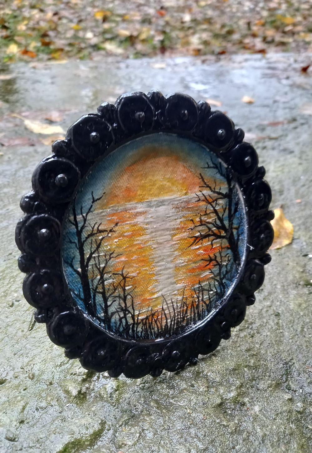 Состояние хорошее, рамка для миниатюры или фото, из металла, диаметр примерно 15см, в рамке размещена миниатюра написанная маслом на холсте, смотрите все мои лоты