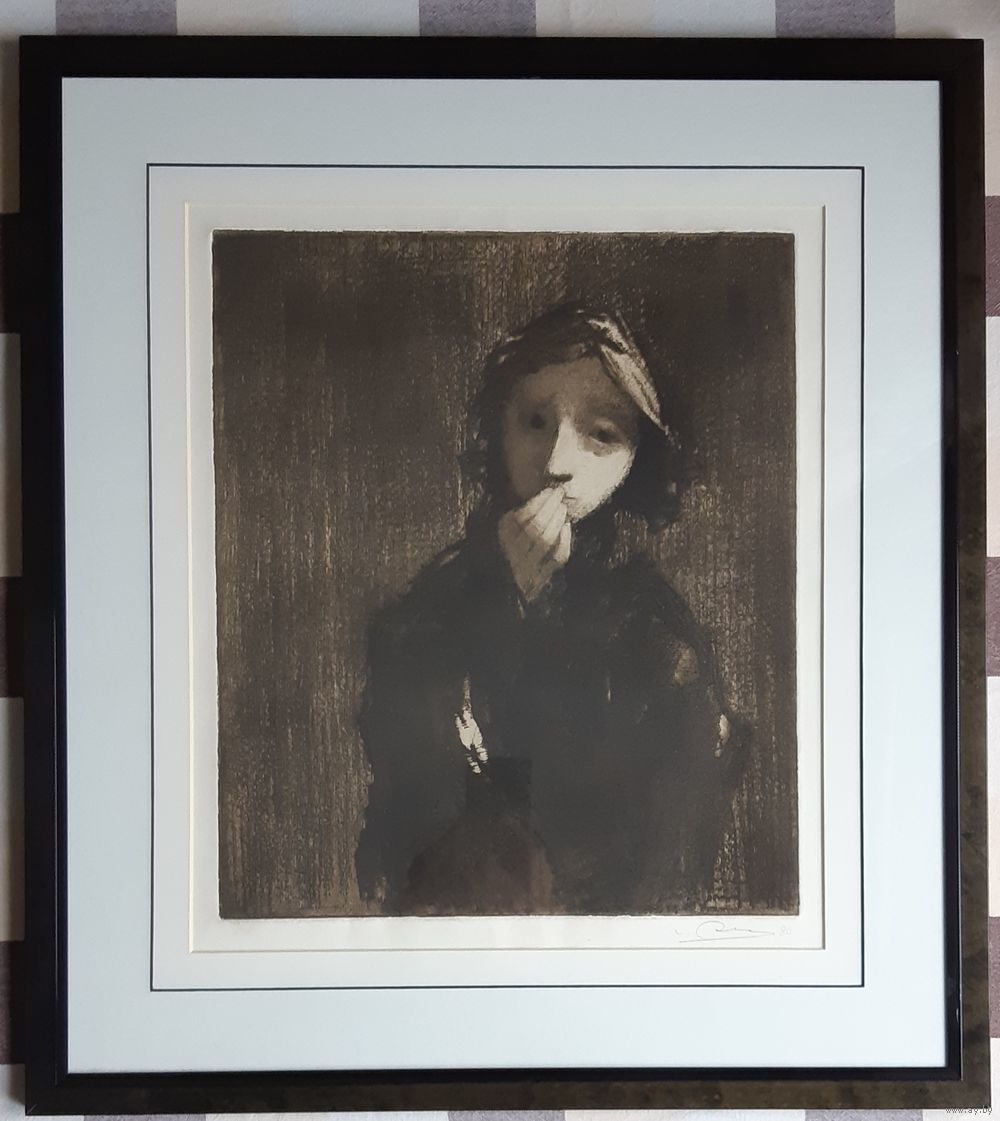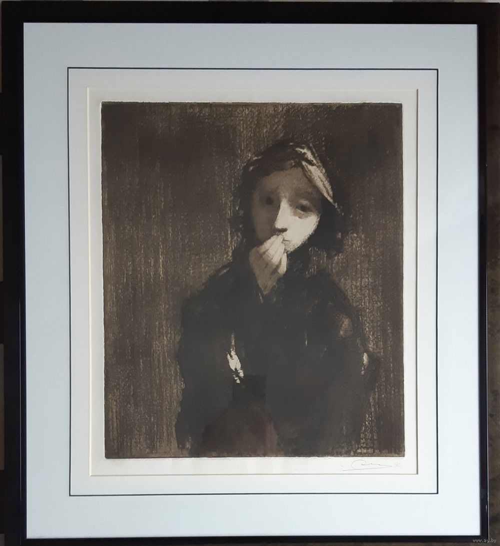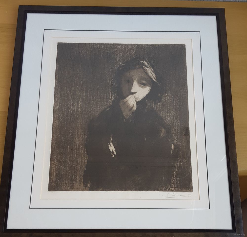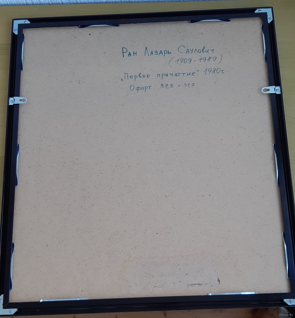 | Размер 37,3 см х 31,7 см. Офорт оформлен с двойным паспорту в металлической раме (черный лак) и стекло. | |
