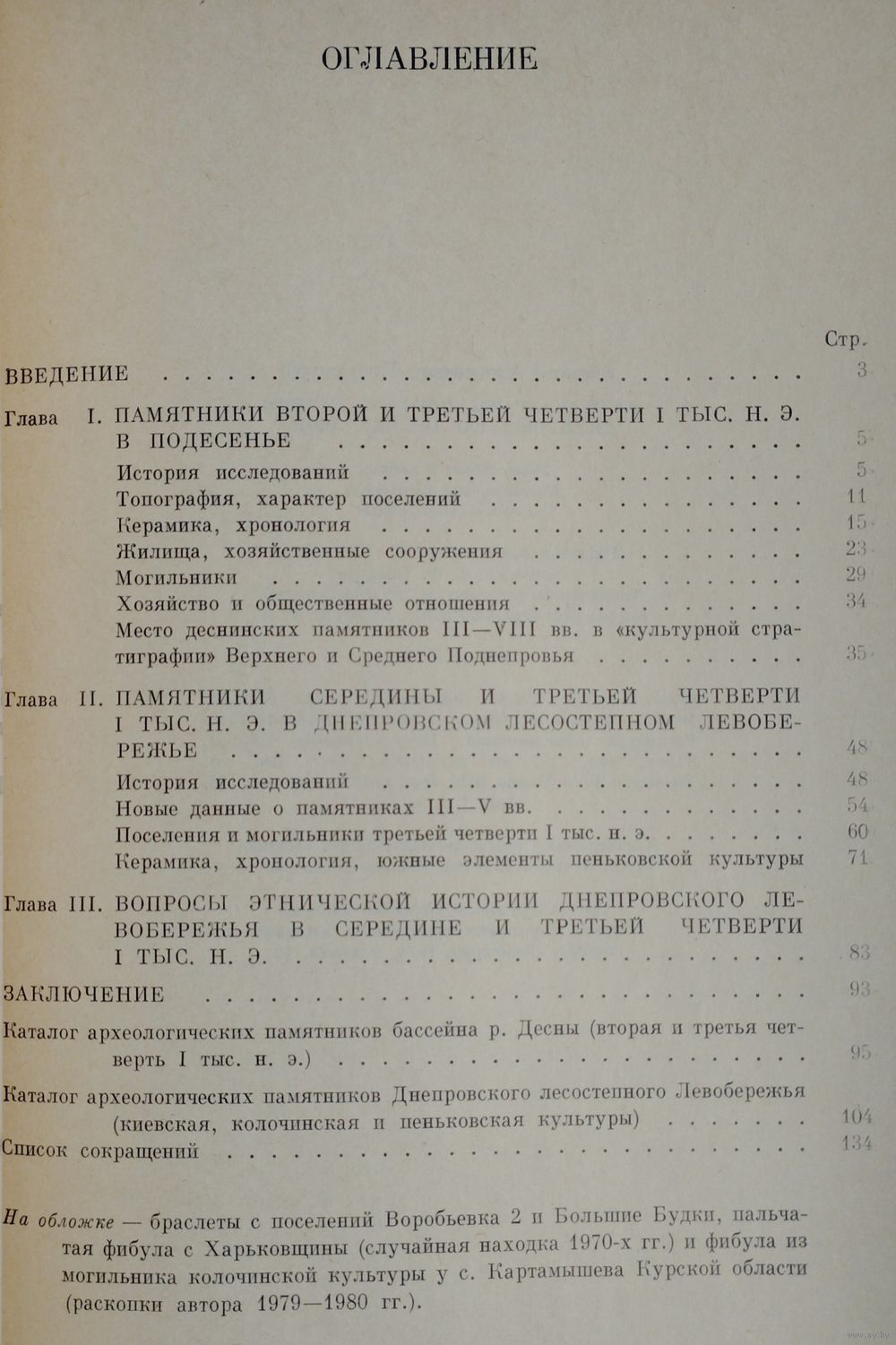 Большой энциклопедический формат. Тираж 2000 экз. 136 стр. Книга содержит разработку важнейших вопросов истории Днепровского Левобережья в период, к которому восходят истоки древнерусской государственности. Введен и источниковедчески проработан новый обширный археологический материал, составляющий фактическую основу работы.