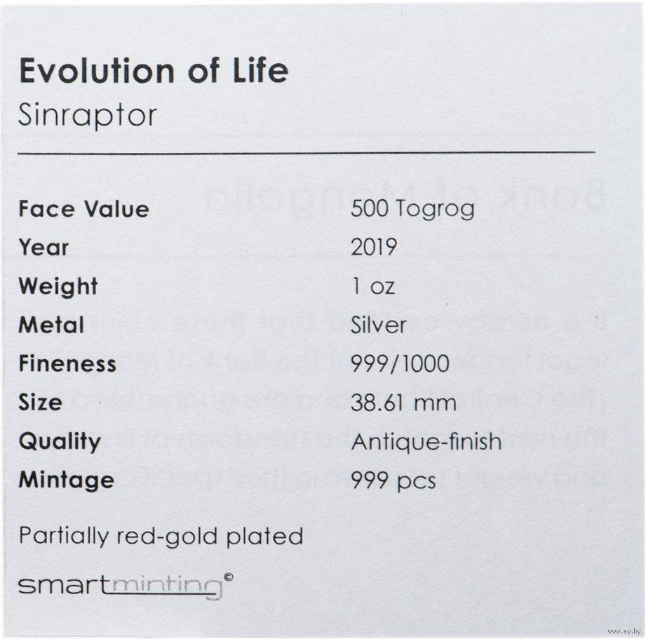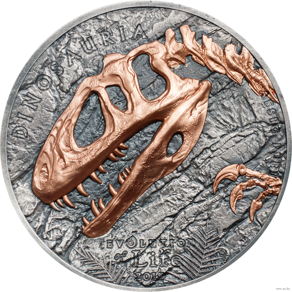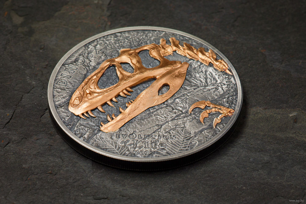 На монете представлены удивительные и детализированные окаменелости Нимравиды покрытые розовым золотом с высоким рельефом (Smartminting).