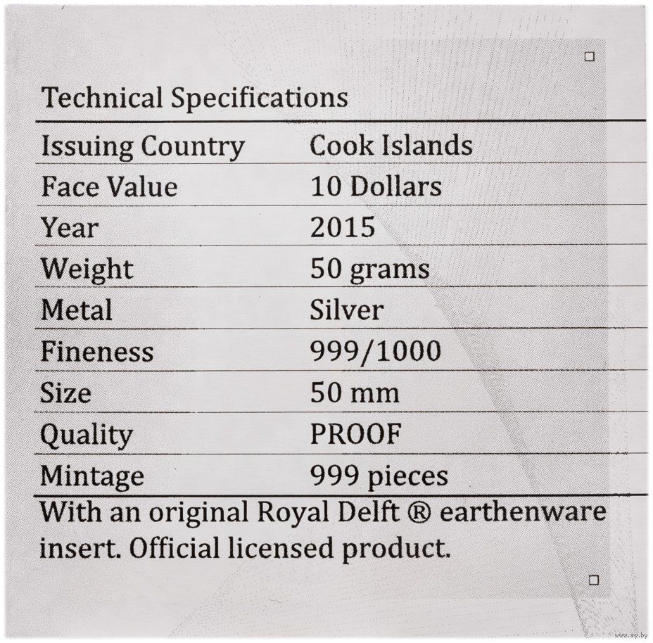 Детализация и высокий рельеф монеты достигнут благодаря применению уникальной технологии чеканки Smartminting.