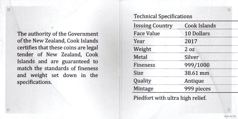 Детализация и высокий рельеф монеты достигнут благодаря применению уникальной технологии чеканки Smartminting.