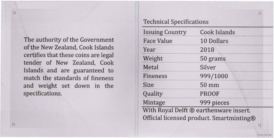 Детализация и высокий рельеф монеты достигнут благодаря применению уникальной технологии чеканки Smartminting.