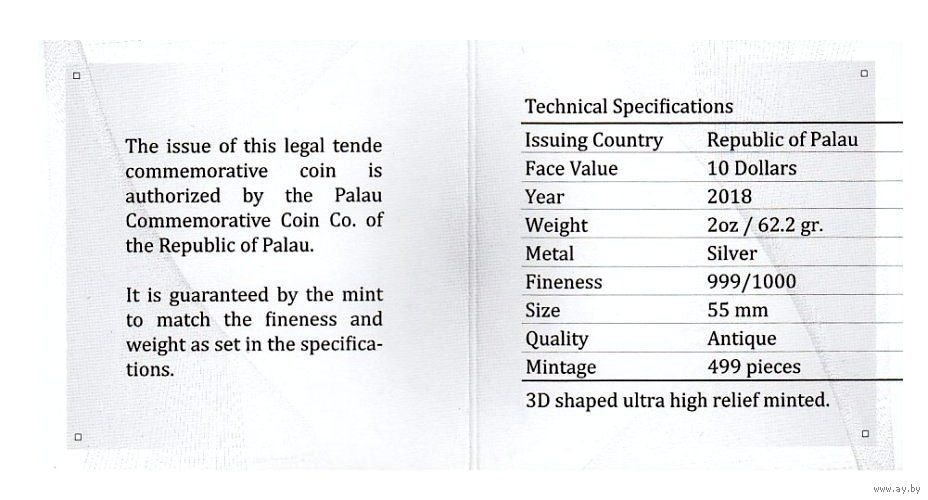 Детализация и высокий рельеф монеты достигнут благодаря применению уникальной технологии чеканки Smartminting.