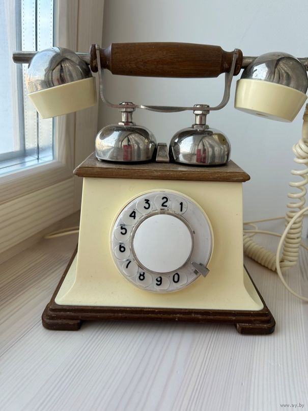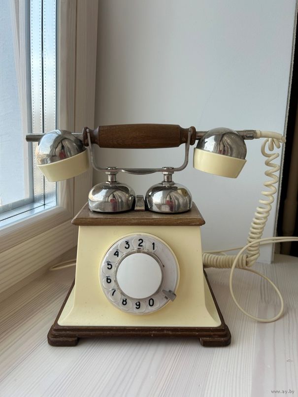 Антикварный телефон в хорошем состоянии отделка деревом