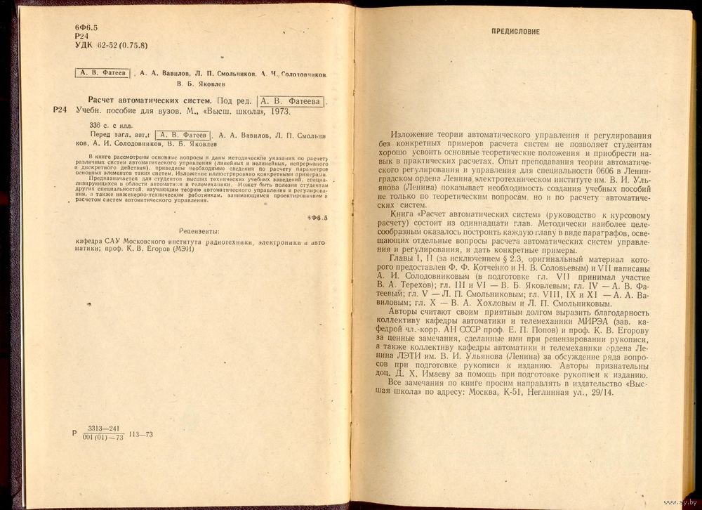 В книге рассмотрены основные вопросы и даны методические указания по расчёту различных систем автоматического управления (линейных и нелинейных, непрерывного и дискретного действия), приведены необходимые сведения по расчёту параметров основных элементов таких систем. Изложение иллюстрировано конкретными примерами.